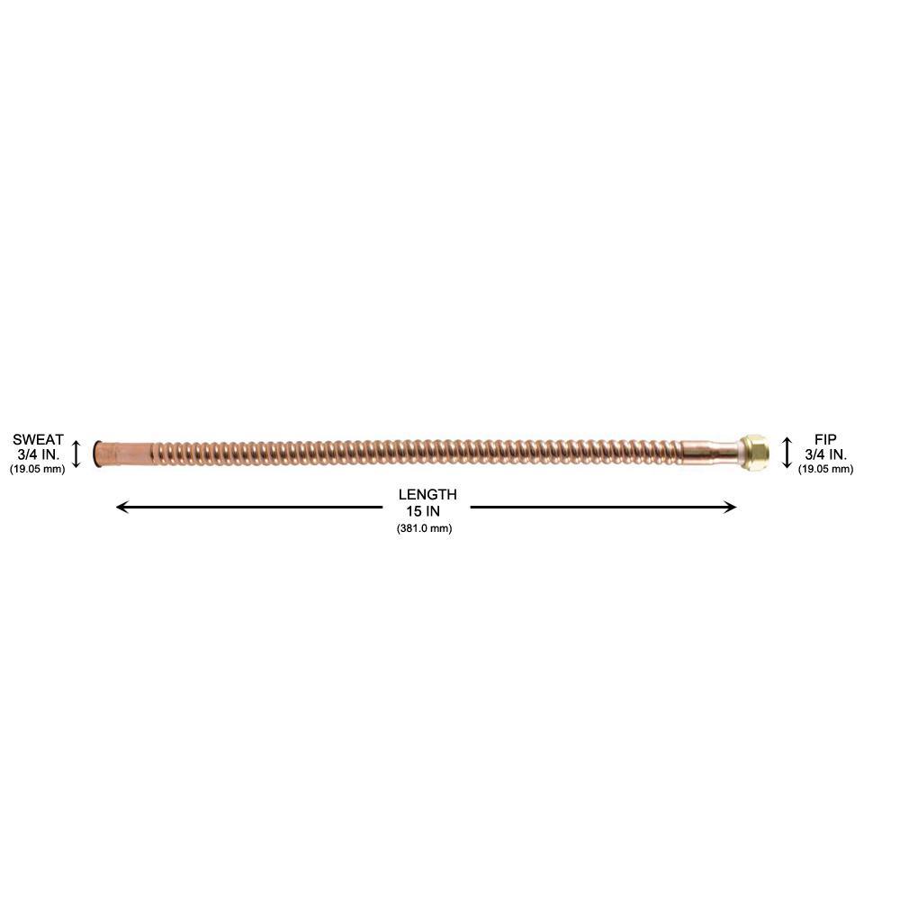HOME-FLEX 3/4 in. MIP x 3/4 in. FIP x 15 in. L Copper Corrugated Water Connector is designed for use in residential and commercial applications for water heater hookups. It is flexible, corrosion resistant and has attached end fittings with built-in dielectric collars. It is the ideal choice for homeowners and contractors alike.
