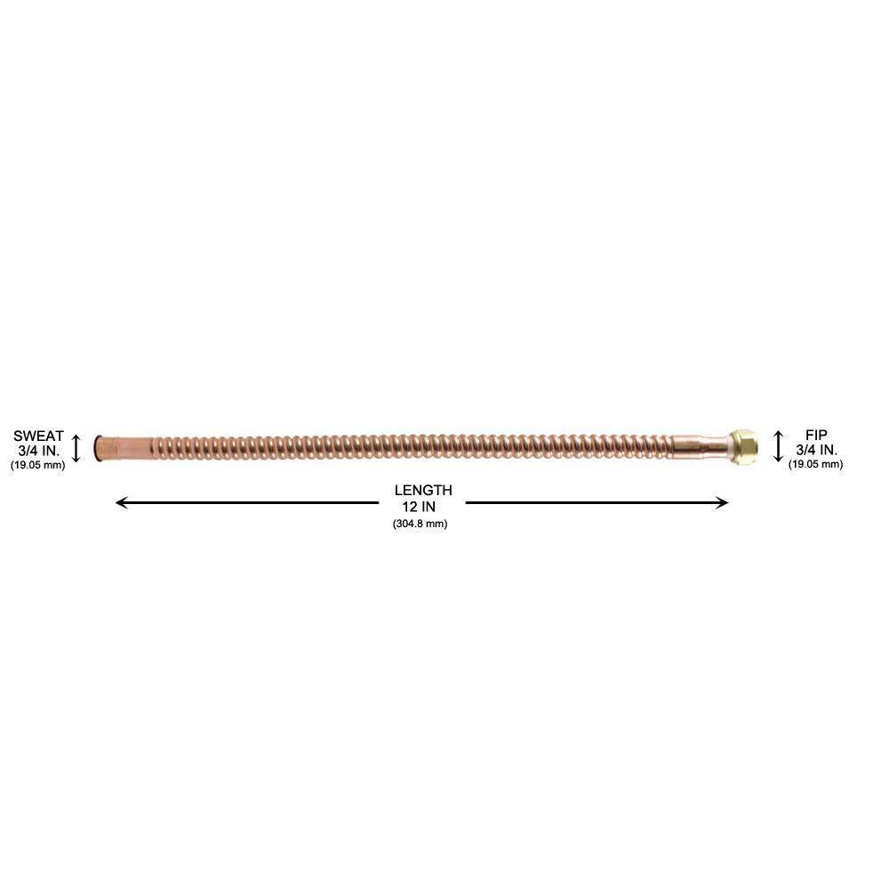 Home-Flex 3/4 in. MIP x 3/4 in. FIP x 12 in. L Copper Corrugated Water Connector is designed for use in residential and commercial applications for water heater hookups. It is flexible, corrosion resistant and has attached end fittings with built-in dielectric collars. It is the ideal choice for homeowners and contractors alike.