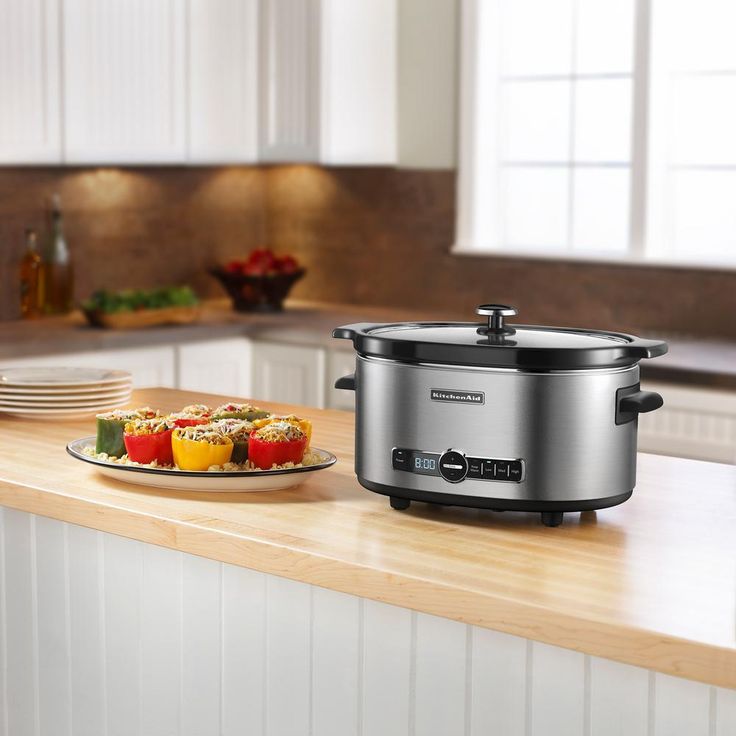 6 Qt. Stainless Steel Slow Cooker with Glass Lid and Built-In Timer