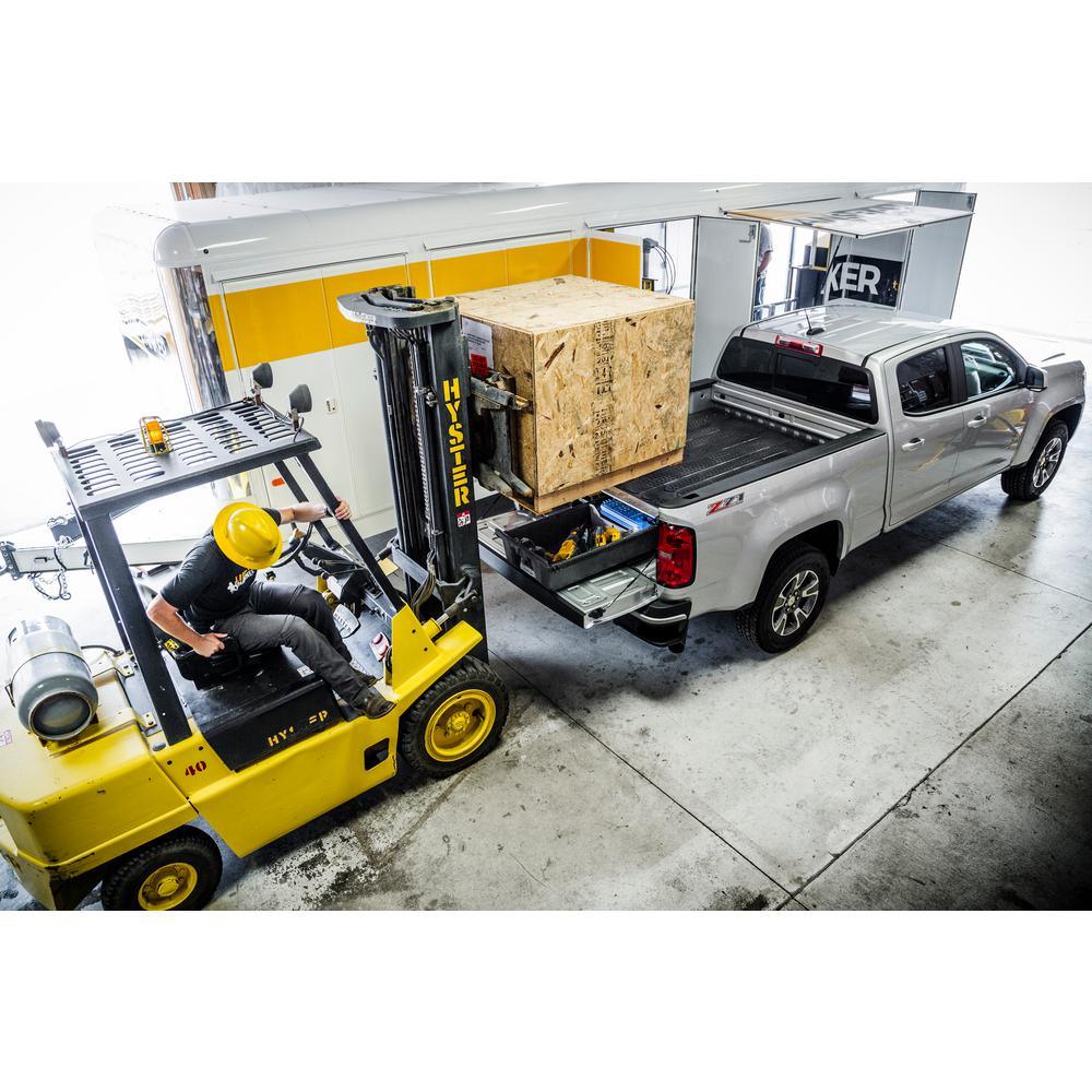 DECKED revolutionized Pickup Truck Bed Storage with a low-profile truck bed tool box system that is compatible with Ford, Dodge RAM, Chevy, GMC, Nissan and Toyota midsize trucks. 2 full bed-length drawers offer dry, secure storage with ergonomic access for tools, gear, guns, fishing rods and other items that slide out at waist height, while still allowing the owner full use of their truck or van bed. DECKED has a 2,000 lb. payload on the deck and 200 lbs. per drawer load capacity. Covered by 3-year warranty against product defects or failure due to workmanship. Further organization and customization is possible with optional nesting storage boxes, drawer dividers, tie downs and locks. DECKED Storage Systems are easy to install or remove, weatherproof, secure, and ergonomic. With a low-profile design the DECKED Storage System leaves plenty of room for further upfitting. DECKED Truck Storage Systems are perfect for small businesses like painters, carpenters, plumbers and handyman services. DECKED Storage Systems were also designed with the outdoors enthusiast in mind, allowing you to carry fishing, hunting or any kind of sports gear you can imagine. Note: drawers are not water or airtight, some fine particulate matter such as dust and water vapor may enter. Assembly and installation time approximately 2 hours. Removal/reinstall time approximately 15-20 minutes.