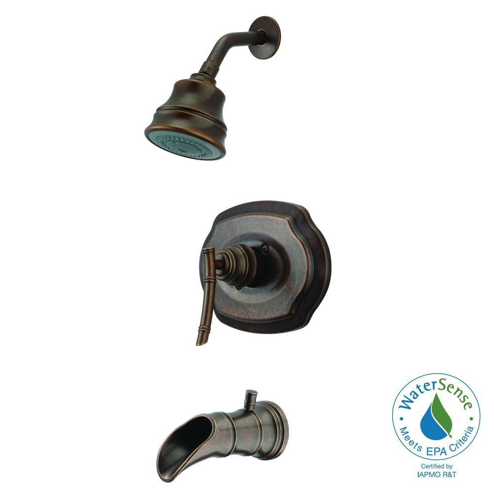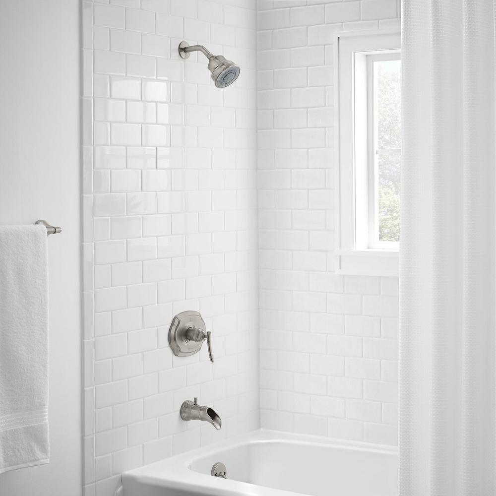 The Glacier Bay Bamboo Single-Handle 3-Spray Tub and Shower Faucet in Brushed Nickel boasts a unique design and distressed finish for a stylish accent ideal for almost any bathroom. The ADA compliant single-lever handle helps keep you in control. This tub and shower faucet features a WaterSense certified showerhead with a 1.8 GPM flow rate to deliver efficient water flow and a ceramic disc valve to ensure drip-free performance. Enhance your bathroom with this beautiful tub and shower faucet.