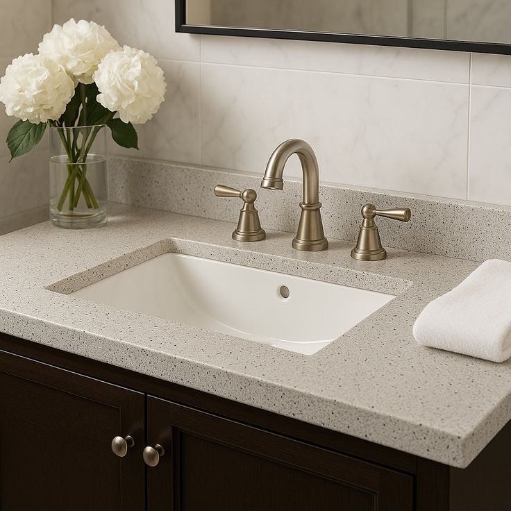 Transform your bathroom into a sanctuary of sophistication with this exquisite vanity top. The Silver Ash finish, with its delicate flecks and smooth surface, evokes a sense of refined luxury. Pair it with sleek chrome fixtures to enhance its modern appeal, or contrast it with dark cabinetry for a striking visual effect. This vanity top is not just a functional addition but a statement piece that embodies elegance and practicality.