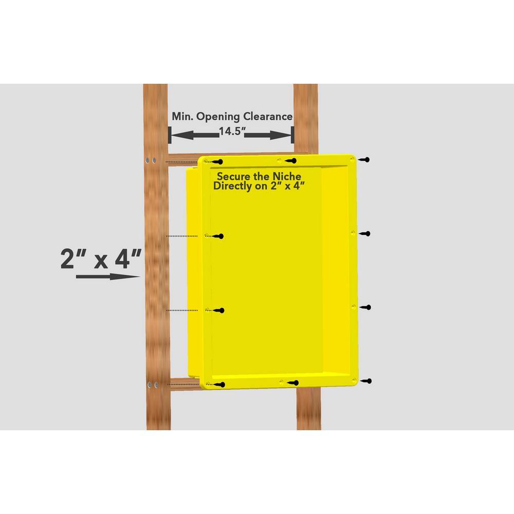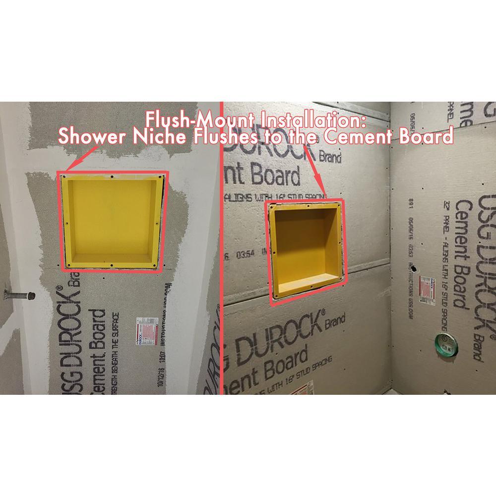 Concerned about mold and leakage in your contractor hand fabricated niche in the shower, Look no further, here's the solution. Our prefabricated recessed niche is ready to tile. Constructed from ABS is lightweight, but very durable material, it is virtually indestructible without the clutter and leaks. Handmade niches typically experiences major problems in the long run, however with the prefabricated niche, it will not mold, mildew, rust or leak and 100% guarantee waterproof and leak-proof. Tile set directly on niche surface simple and quick install vertically or horizontally depending on your design. Fits standard wall framing. Make your shower niche a design focal point and still be able to place your shower necessities. Multiple sizes available suitable for your bathroom design. Pre-fabricated shower niche that is fully sealed, hassle-free, quick and easy installation install niche flush with cement board, makes traditional tedious shower niche installation effortless. 100% guaranteed waterproof and leak-proof. Compare with traditional handmade shower niche having a high risk of leakage and cause mold problems Constructed with light weight yet durable ABS material, strong bond with polymer modified thin-set mortar, highly resistant to corrosive chemicals and physical impacts Can be install vertically or horizontally according to your bathroom design and needs Overall Dimension: 16 in. x 20 in. x 4 in. I.D.: 14 in. x 18 in. x 4 in.