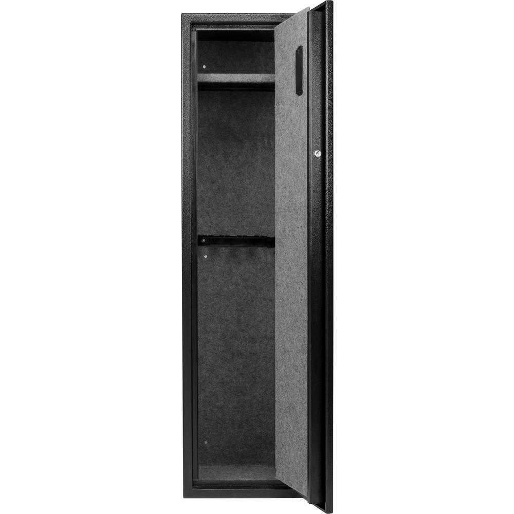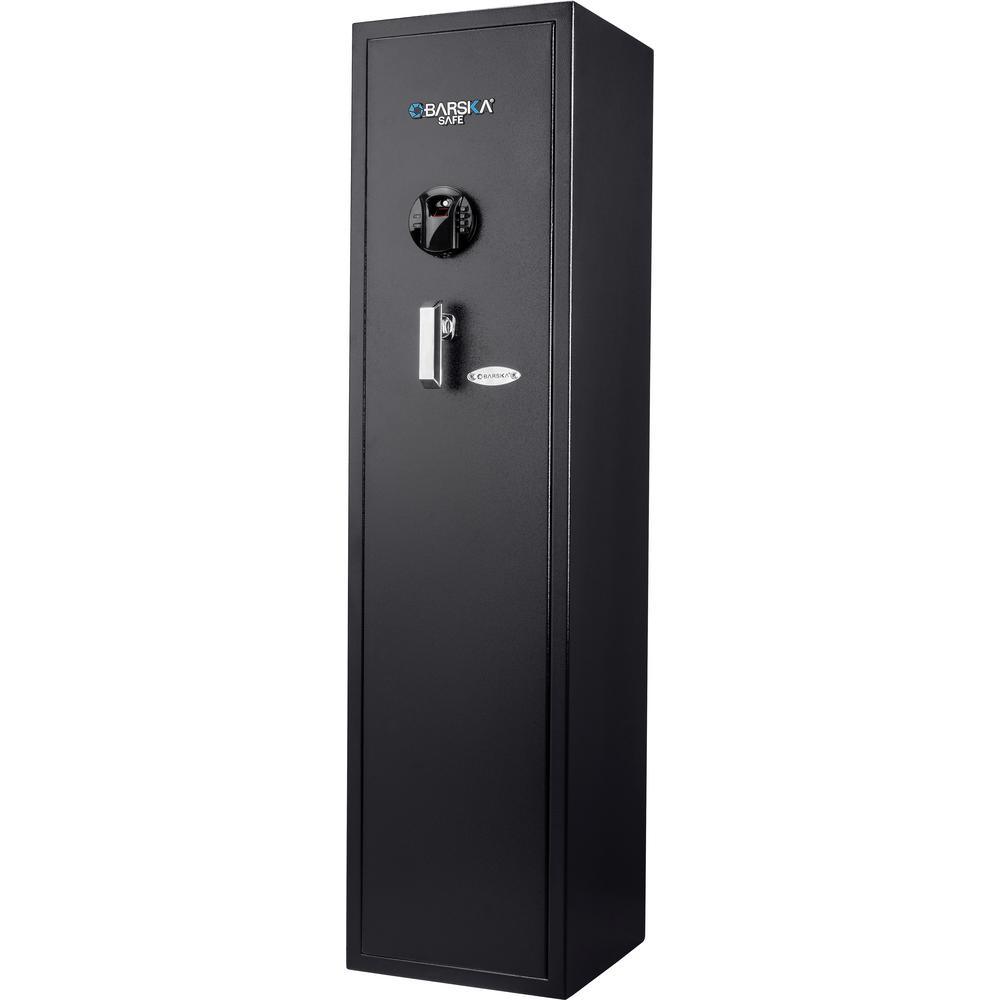 The HQ900 Standard Biometric Keypad Rifle Safe by BARSKA is a great way to keep rifles and other firearms securely stored and readily accessible. The HQ900 features an advanced Biometric Fingerprint Identification System that allows a registered user to quickly access the contents inside with the simple scan of their fingerprint. Additionally, the HQ900 rifle safe can either be accessed with a user created PIN code or with traditional keys. The HQ900 Biometric Keypad Rifle Safe includes a 5 position rifle rack, 2 position handgun rack and 2 removable shelfs for extra accessories.