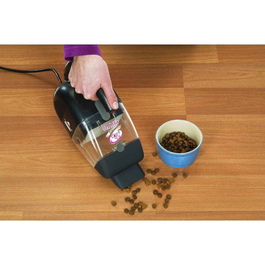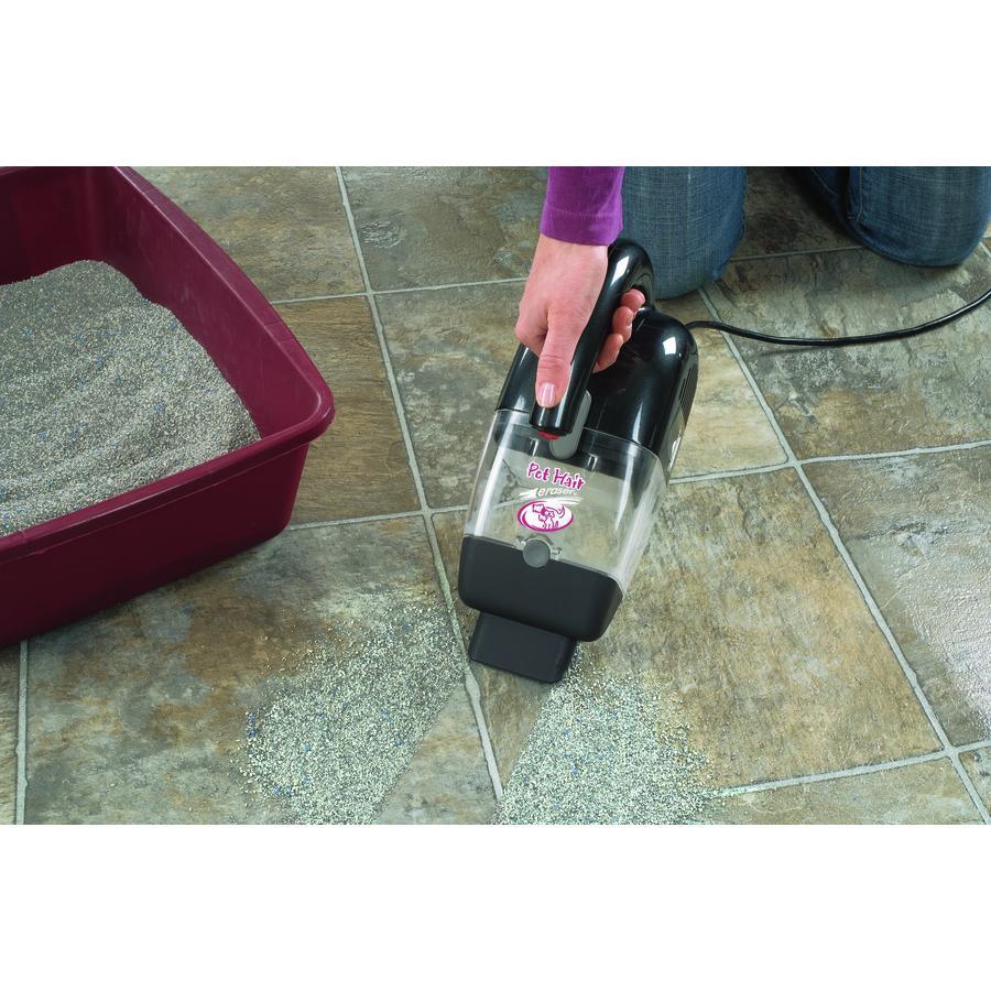 Pet Hair Eraser® corded handheld vacuum is designed for quick cleaning of pet hair and dry messes on stairs, upholstery and hard surfaces