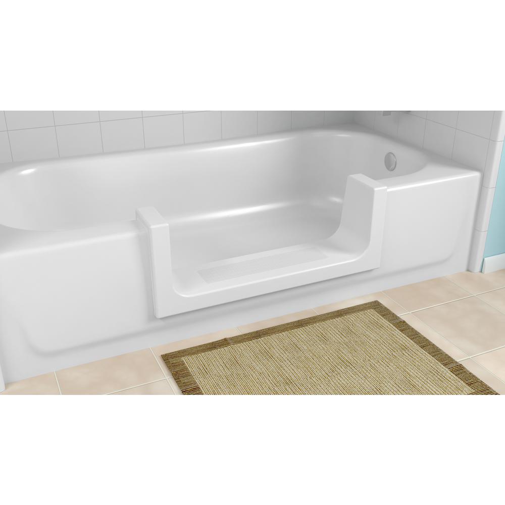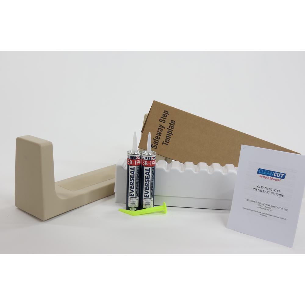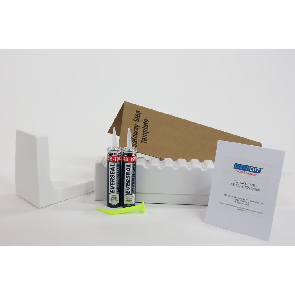 Convert an existing bathtub into a step in shower with the Clean-cut Step. Kit Comes Complete with 1-Step, one 2-part Support Structure, 2-bottles of Industrial Grade Adhesive with Application Nozzle, 1-Cutting Template and Installation Guide. Step features non-skid step pad for step-in shower accessibility.