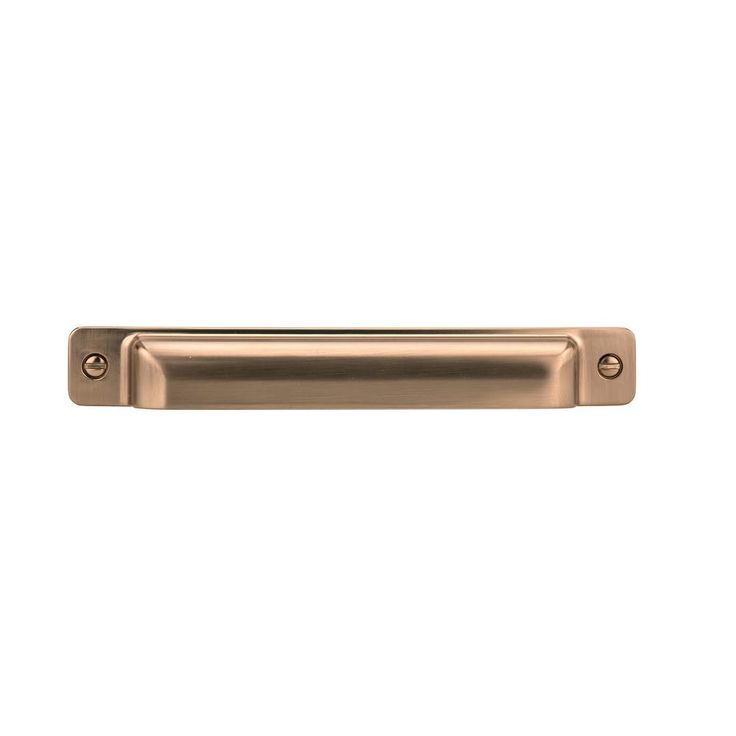 This rectangular cup pull with faux screw embellishments is available in a variety of lengths and trendy finishes. A lovely addition to any type of decor. Mounting hardware included for easy installation.