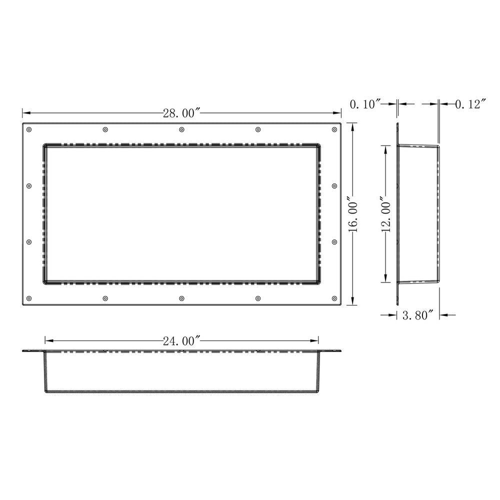 Concerned about mold and leakage in your contractor handmade niche in the shower, Look no further. Our prefabricated recessed niche is ready to tile. Constructed from ABS is lightweight, but very durable material, it is virtually indestructible without the clutter and leaks. Handmade niches typically experiences major problems in the long run, however with the prefabricated niche, it will not mold, mildew, rust or leak and 100% guarantee waterproof and leak-proof. Tile set directly on niche surface simple and quick install vertically or horizontally depending on your design. Fits standard wall framing. Make your shower niche a design focal point and still be able to place your shower necessities. Multiples sizes available suitable for your bathroom design. Dimensions: Overall 16 in. x 28 in. x 3.75 in. Inside: 12 in. x 24 in. x 3.7 in. in. Simple installation can be done in few easy steps compare with traditional handmade shower niche need to take about 4-hours to finish100% guarantee waterproof and leak-proof. Compare with handmade shower niche it will have a high chance to leak and cause mold problem Constructed with light weight and durable ABS material, strong bond with polymer modified thin-set mortar Can be install vertically or horizontally according to your bathroom design Overall Dimension: 16 in. x 28 in. x 3.75 in. I.D.: 12 in. x 24 in. x 3.75 in.
