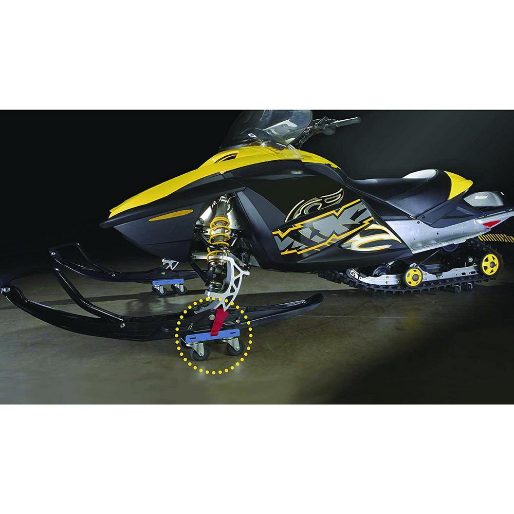 Shepherd Hardware 9298 Snow mobile Dolly Set is a 3-piece unit that enables minimal clearance turning to safely maneuver a snowmobile in your storage area. As a set this item features a 1000 lbs. load rating with a strong steel plate design and hard rubber casters. The 2 front dollies are grooved for snowmobile skis with secure straps to prevent sliding.