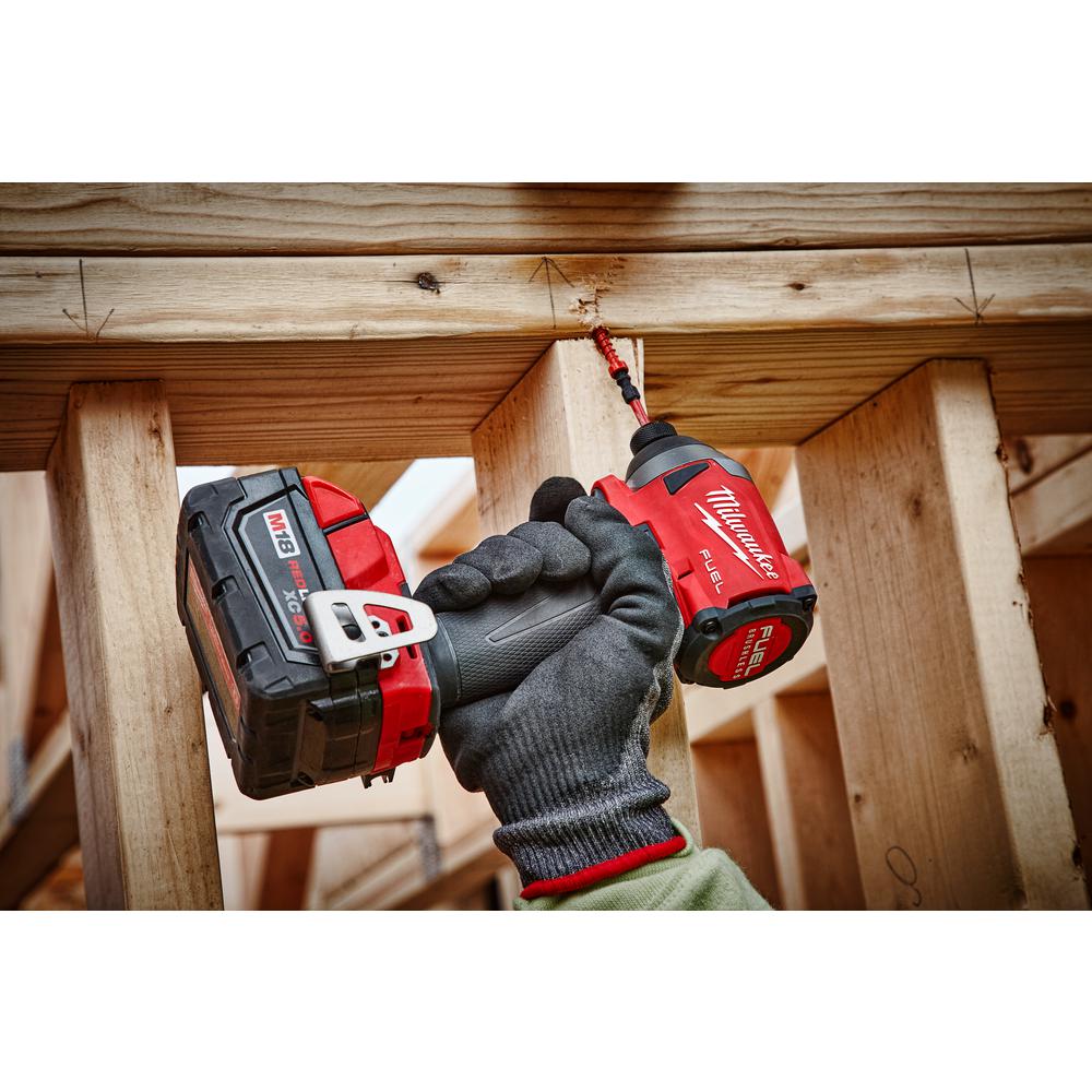 The M18 FUEL 1/4 in. Hex Impact Driver is the fastest, most compact, and most powerful tool in its class. At only 4.59 in. L, this cordless driver allows users to have more access in tight spaces. The 4-Mode DRIVE CONTROL provides greater control over output speed and power for greater versatility. The self-tapping screw provides faster installation time by reducing stripping of fasteners. The POWERSTATE Brushless Motor delivers up to 30% faster driving speed, increasing users productivity. Built-in REDLINK PLUS Intelligence ensures optimal tool performance and provides overload protection to prevent damage to the tool and battery during heavy applications while still maintaining compatibility across the entire M18 system. The REDLITHIUM XC 5.0Ah Battery Pack delivers more work per charge and more work over the life of the pack than competitors. In addition to the driver, this kit comes with 2 M18 REDLITHIUM XC 5.0Ah battery pack (48-11-1850), 1 M18/M12 multi-voltage rapid charger (48-59-1812), 1 durable carrying case, a belt clip and bit holder.