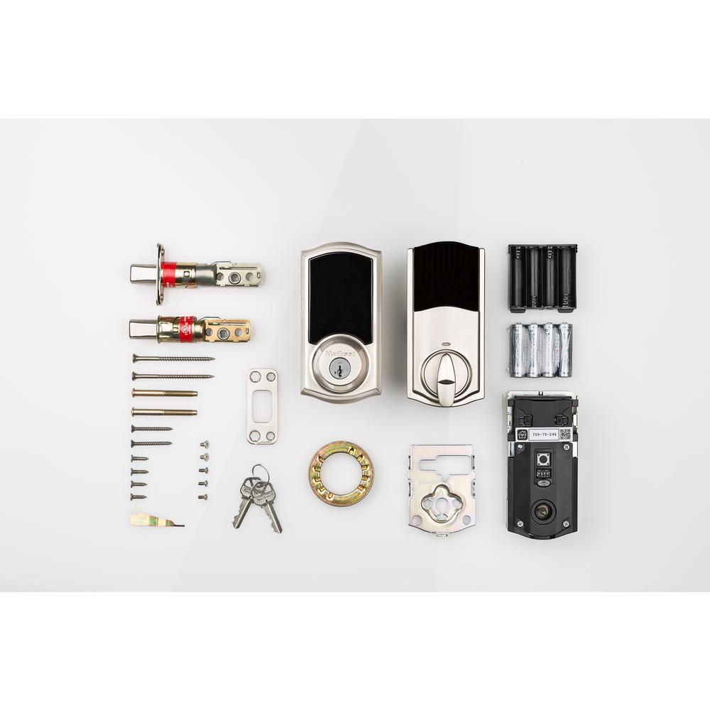 A HomeKit-enabled touchscreen smart deadbolt that delivers secure, keyless entry and classic satin nickel styling. Control and monitor with the Premis iOS app or Siri, and re-key quickly with SmartKey Security. Designed for easy installation on standard exterior doors.