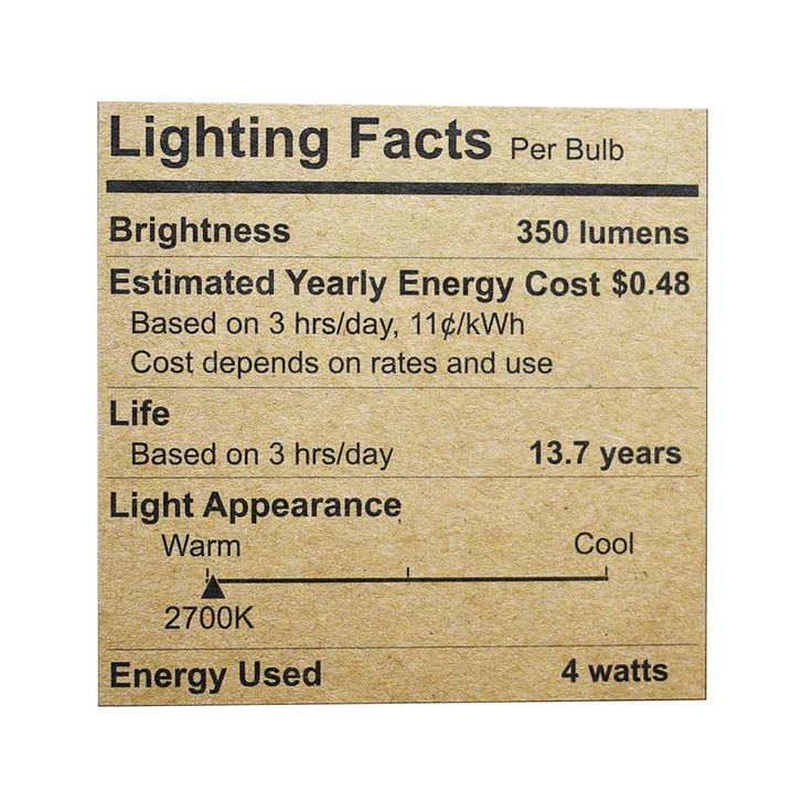 Energy used: 4-Watt (equivalent to a 40-Watt standard incandescent light bulb)
