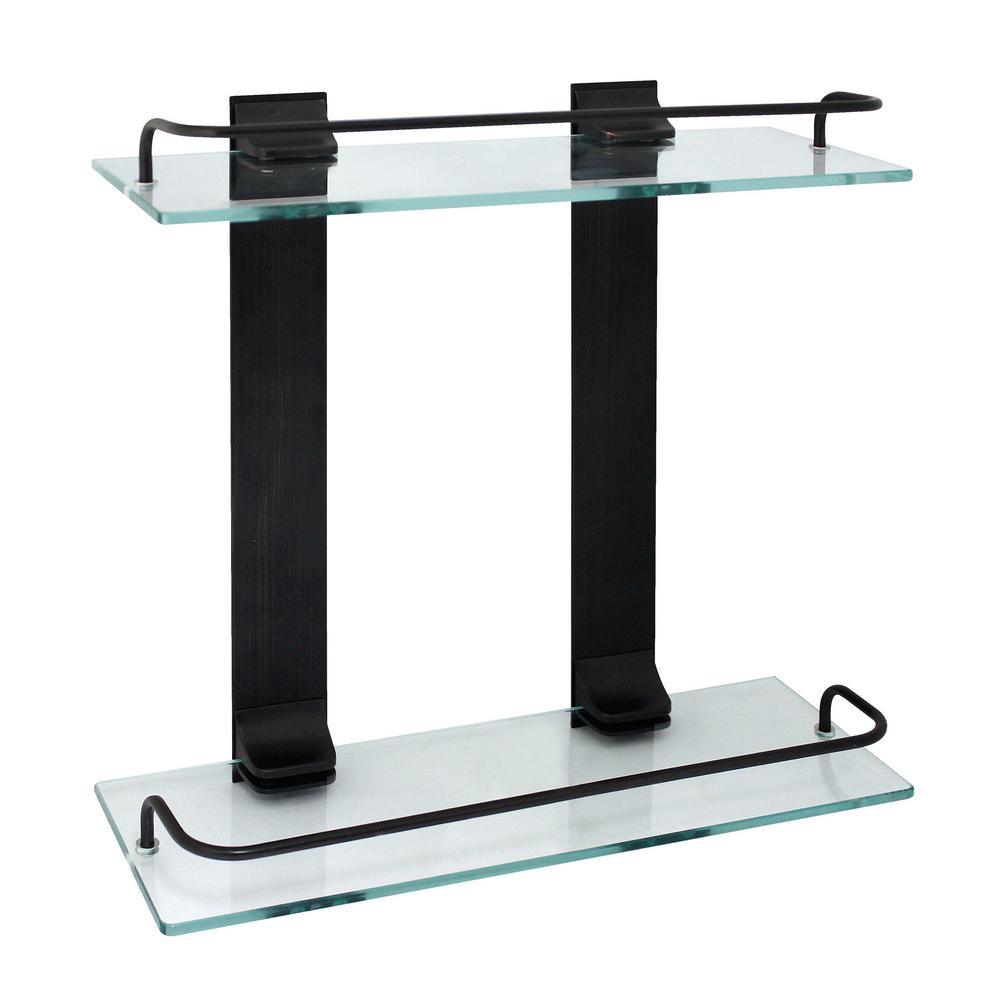 13.75 in. W Double Glass Wall Shelf with Pre-Installed Rails in Rubbed Bronze is the perfect solution for your style and your home