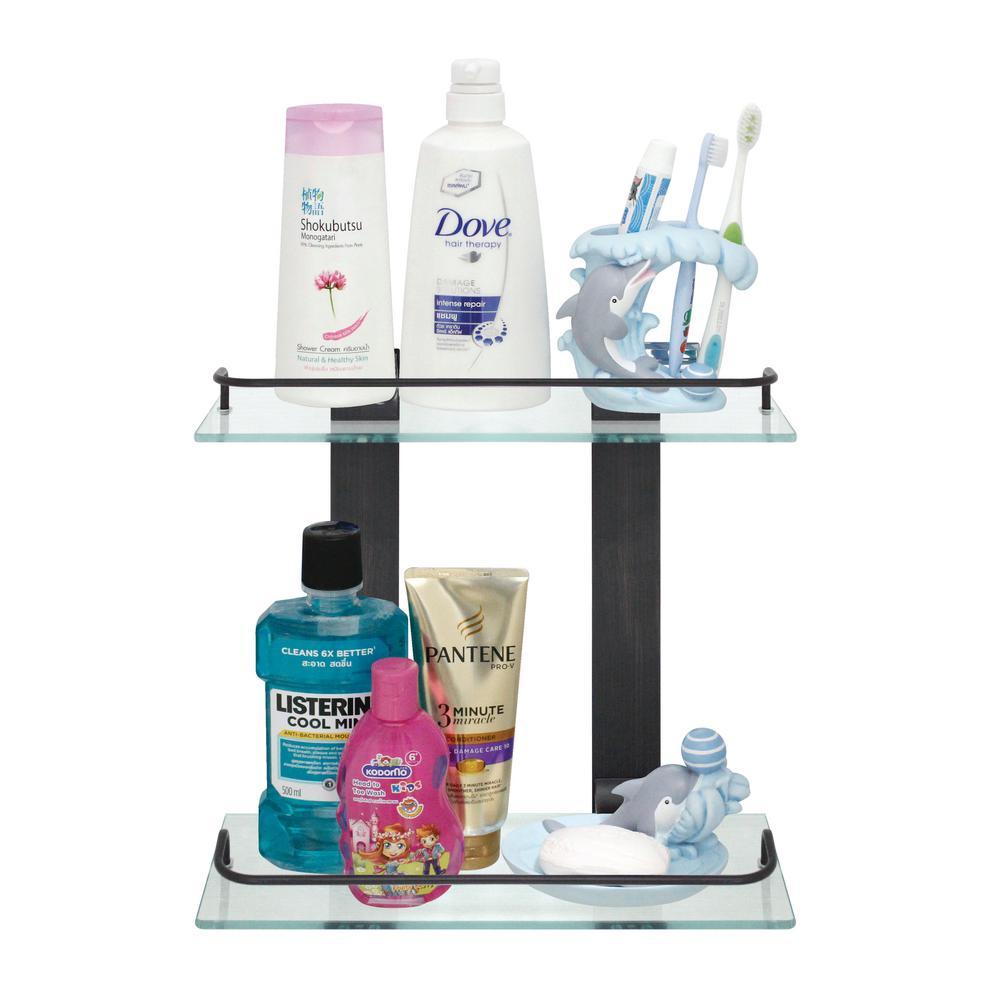 Create some extra storage space in your bathroom with the 13.75 in. W Double Glass Wall Shelf with Pre-Installed Rails in Rubbed Bronze. You can use it to organize and display your bathroom essentials in a neat and orderly manner. The shelf is made of stainless steel and tempered glass with the highest quality materials to provide a lifetime of beauty. This wall-mount glass shelf can be easily installed on your bathroom wall.