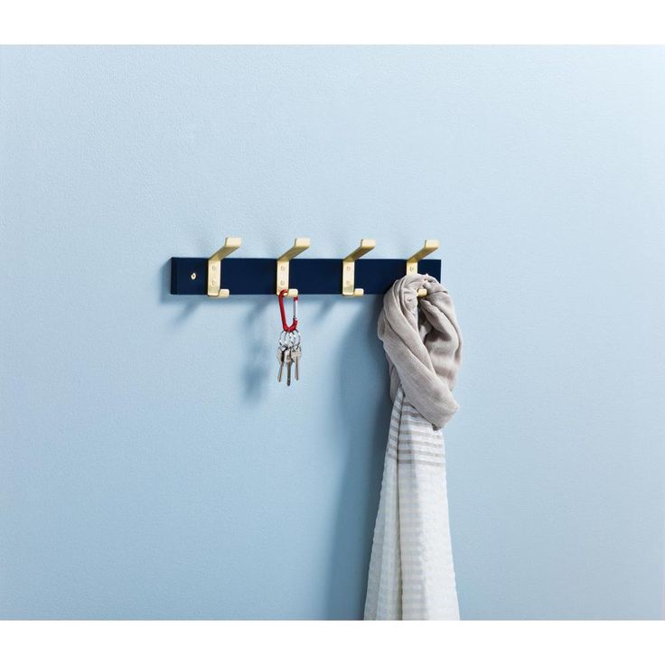 Liberty's Classic Bent Hook Rail turns your storage dilemma into elegant organization. The stunning Bayview Brass hooks are beautifully contrasted against a Cadet Blue rail for maximum effect. This handsome hook rail makes an excellent home for your coats, hats, handbags and other accessories.