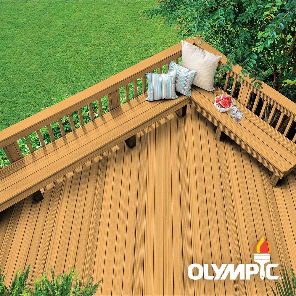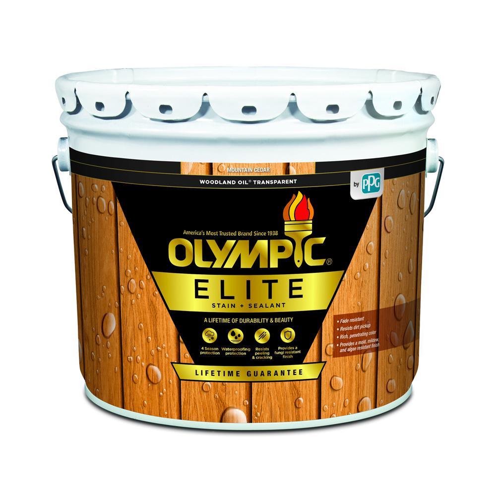 Olympic ELITE: A premium wood stain and sealant. This oil based, transparent wood adds a slight hint of stain color that highlights the wood grain. This super-premium exterior wood stain is formulated to protect and enhance the natural look of wood while providing protection and beauty through all seasons and provides a powerful mold, mildew and algae-resistant finish to your deck, fence. All backed by a lifetime guarantee. Recommended for use on any properly prepared exterior wood, including decks, fences, siding, railings, outdoor furniture and other wood surfaces.