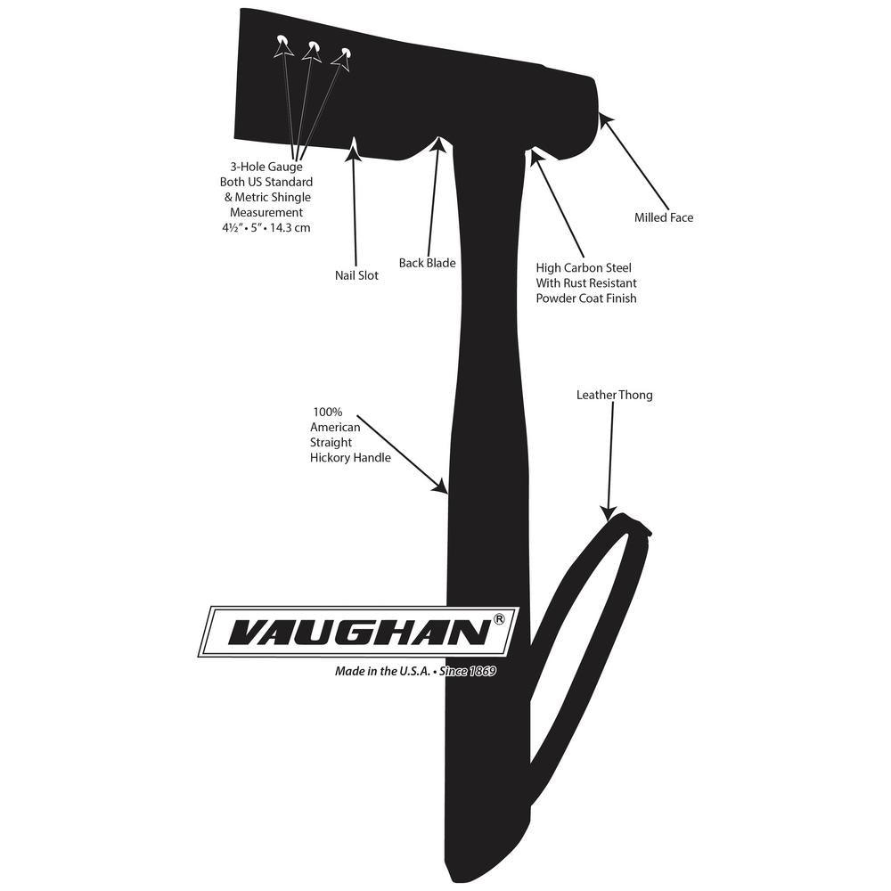 Vaughan SH shingling hatchet features a 13 in. L hickory handle. Head is forged from high carbon steel. Polished blade and milled face.