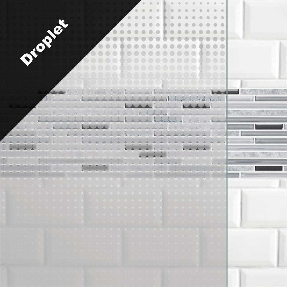 Cascading clear and frosted drops pattern that range in size from middle to ends of the glass panels, creating a contemporary pattern that adds randomized privacy