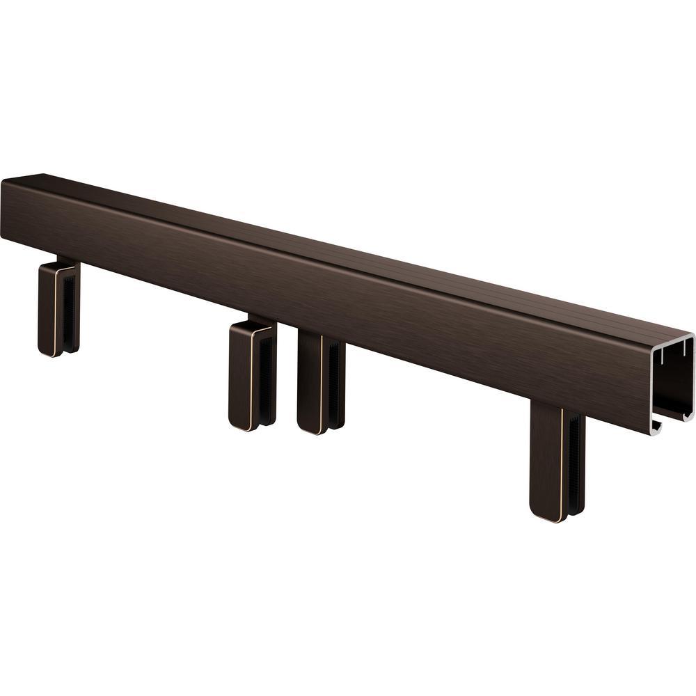 Track features powder coated aluminum finish that resembles a rich and deep, dark brown color, and handle features a deep, chocolate oil rubbed bronze with copper highlights for sophistication and elegance