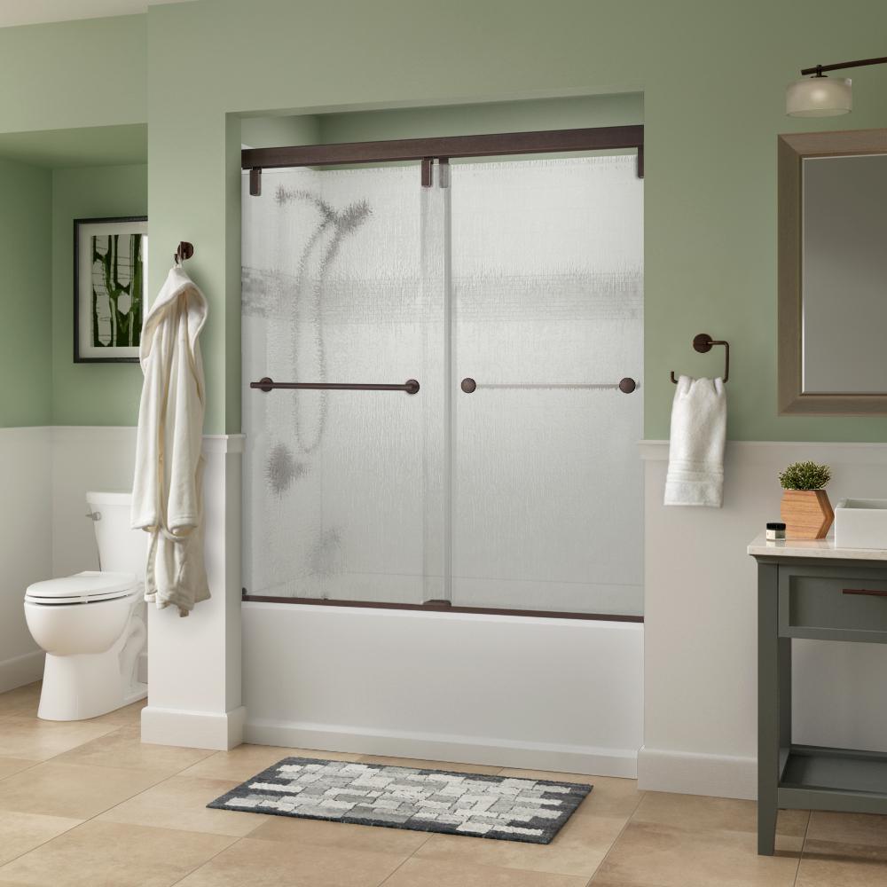 Whether you’re looking for a moderate DIY project or working on a bathroom remodel, upgrading your bathroom with a new sliding shower door is easy with the Delta 1-2-3 custom sliding shower door program. Delta’s custom glass shower door program offers 1000s of design combinations by choosing your glass shower panels, shower door track, and shower door handles to build a unique, personalized glass shower door. Clean, sleek and modern, the Mod bathtub door track in bronze features a soft close system paired with a reversible flat track, and minimal metal components, for the perfect balance of form and function. Show off your beautiful shower with premium, heavy 3/8 in. ANSI certified tempered glass shower panels, featuring Delta Spot Guard, featuring a textured surface that resembles water running down the panels for a spa-like feel and the most privacy. The Lyndall sliding shower door handles in bronze feature two convenient towel bars for extra bathroom storage in a contemporary design silhouette that beautifully demonstrates simplistic, modern elegance.