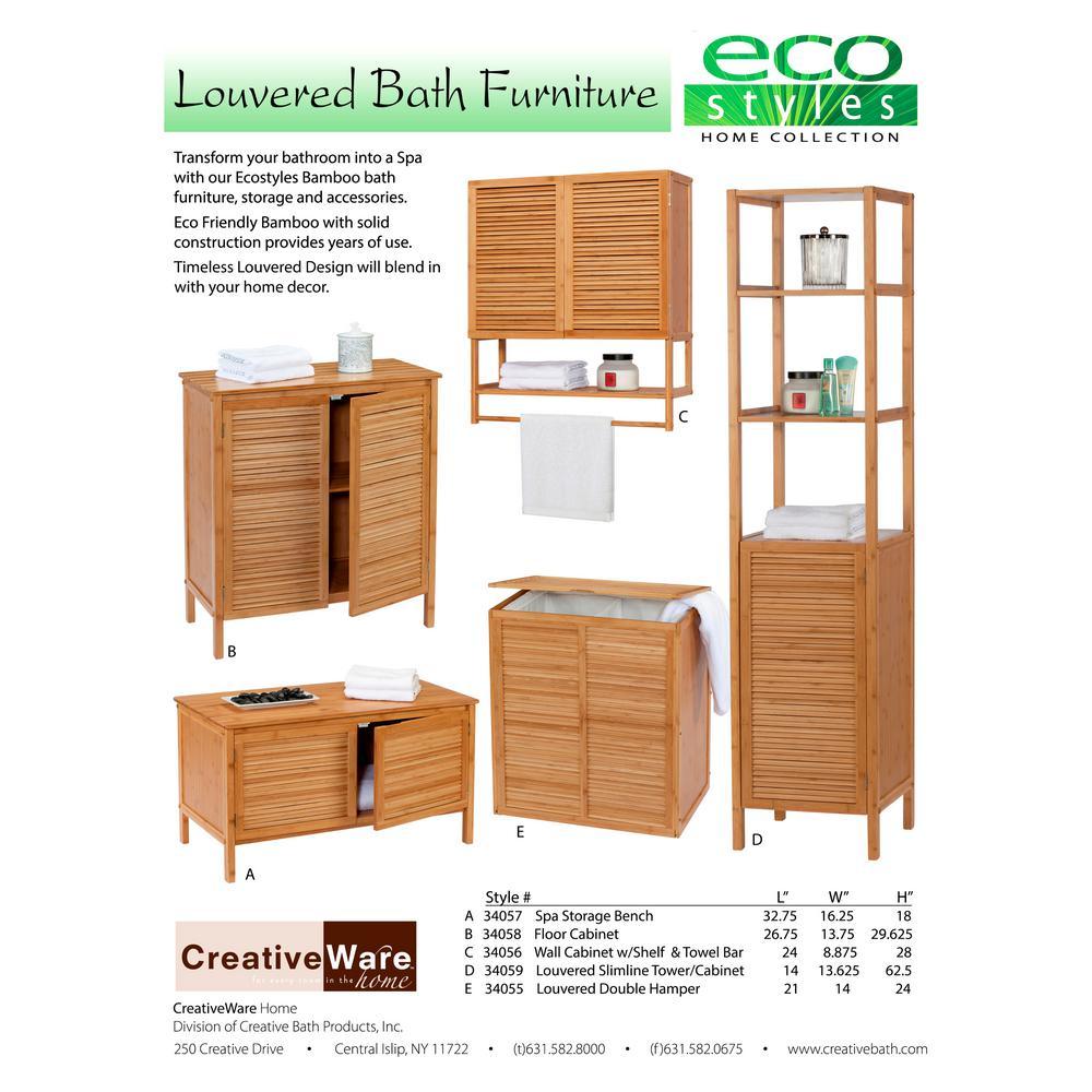 The Creative Ware Home Ecostyles Louvered 2-Door Floor Cabinet provides ample storage for larger items and helps keep essentials out of sight. Beautiful, eco-friendly bamboo construction is sturdy as well as easy to care for. You're sure to love the exceptional craftsmanship which promises years of enjoyment, even in humid environments.