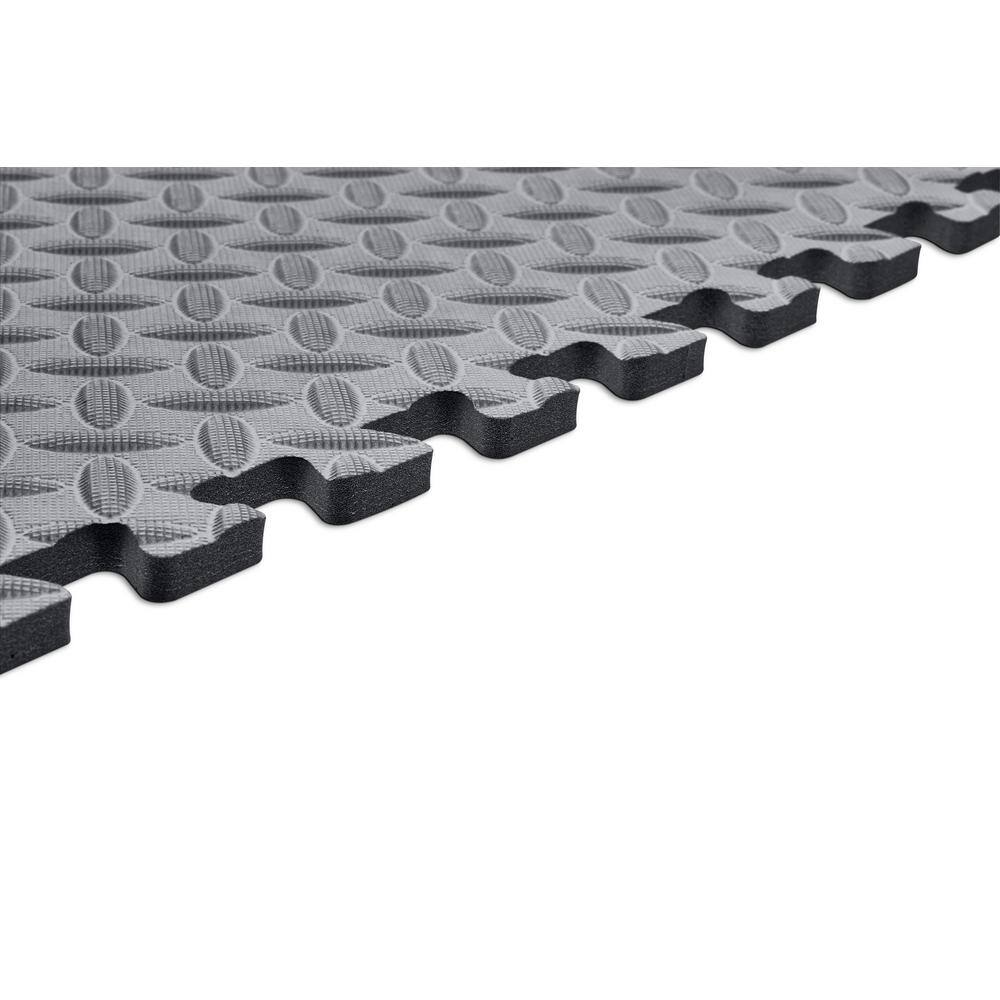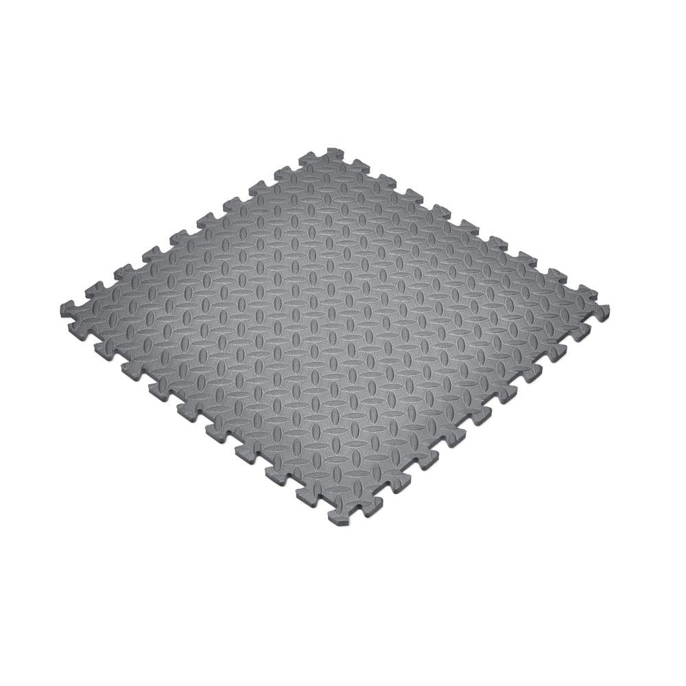 Gray EVA Foam Diamond Plate Interlocking Floor Tiles, 18-Pack