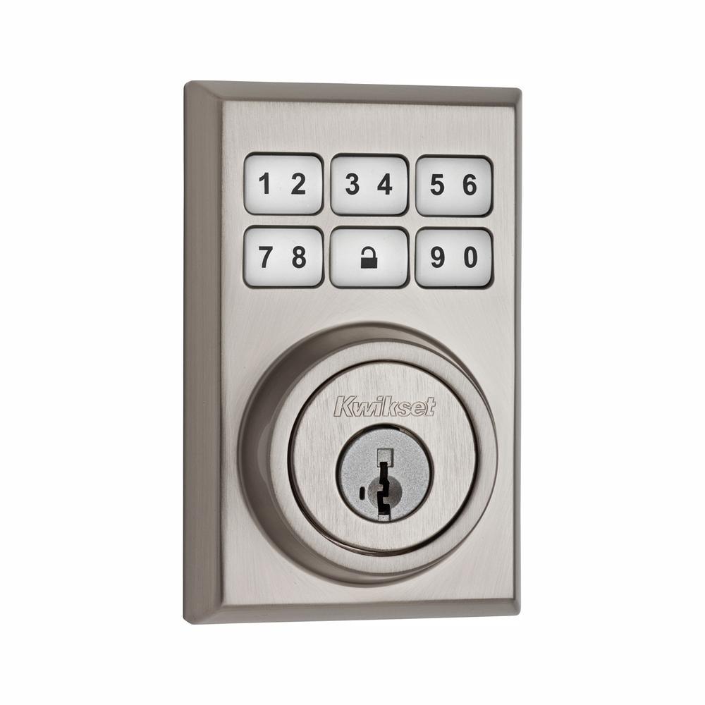 Choose a personal code to be able to enter your home with the SmartCode touchpad smart lock with Home Connect technology. You have the option of no longer using a key due to the one-touch locking motorized deadbolt that allows you to punch in a code on a back-lit keypad for entry. The Home Connect technology allows you to wirelessly communicate with other devices in your home and remotely check the door lock status, lock or unlock the door and receive notifications. Installation is easy and the SmartCode program is easy to use and it operates with 4 AA batteries. The deadbolt is single cylinder and can be used to lock the door with a key or with the keypad, it even has a satin nickel finish to bring style to your home's exterior.