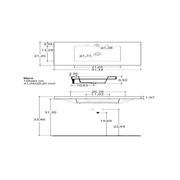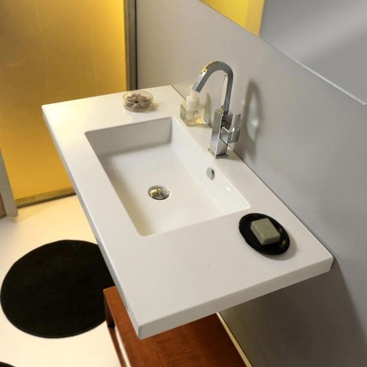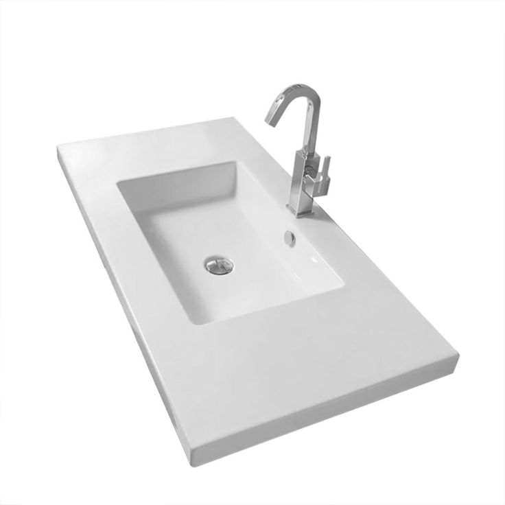 Rectangle white bathroom sink made from high quality ceramic. Modern style sink with Wall mount or Drop-in application. Sink has 1 pre-drilled faucet hole. Part of the Tecla Cangas collection. Made in Italy.