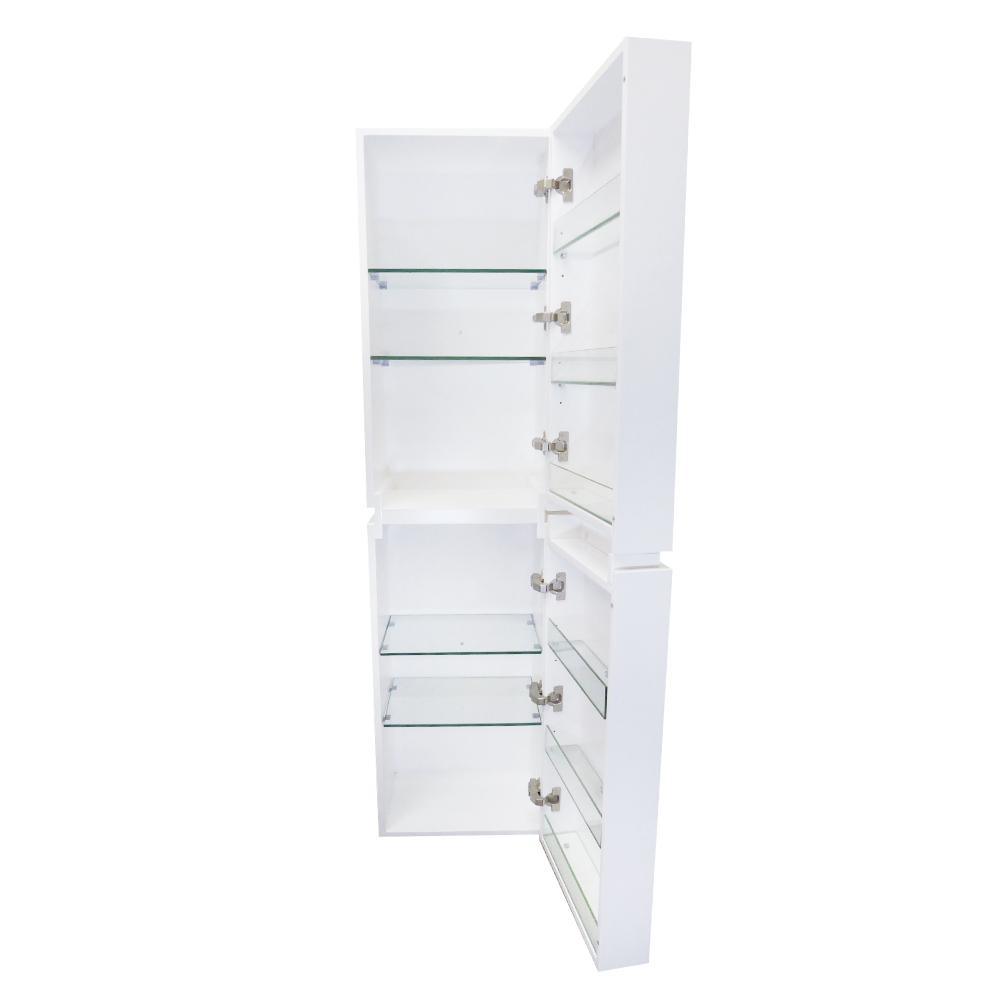 This simple and modern wall mount linen cabinet is the perfect addition to any space needing extra storage. This beautifully designed cabinet includes 10-glass shelves (4-adjustable and 6 non-adjustable) allowing for items to be stored in an optimal and organized manner with full visibility. The cabinets waterproof wood finish protects against bathroom humidity and ensures long lasting durability and its soft closing doors ensures safety for the entire family. Vanity dimension: 16 W x 15 D x 31 H, Solid Birch, White.