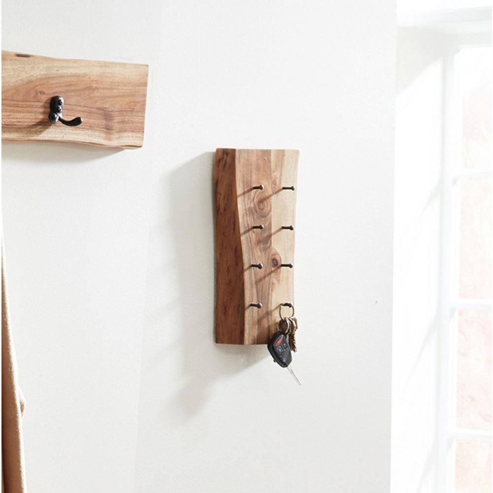 Alpine Live Edge key holder is uniquely yours, style your entryway, living room or bedroom with this gorgeous natural Acacia wood key holder. 8 black metal key holders will help keep your keys organized and accessible. The live edge shape will vary on every piece due to the unique features of the natural wood. No piece is exactly alike, the subtle imperfections such as knots and cracks are part of the wood's character. A clear natural finish enhances the beautiful features in each piece of solid acacia wood.