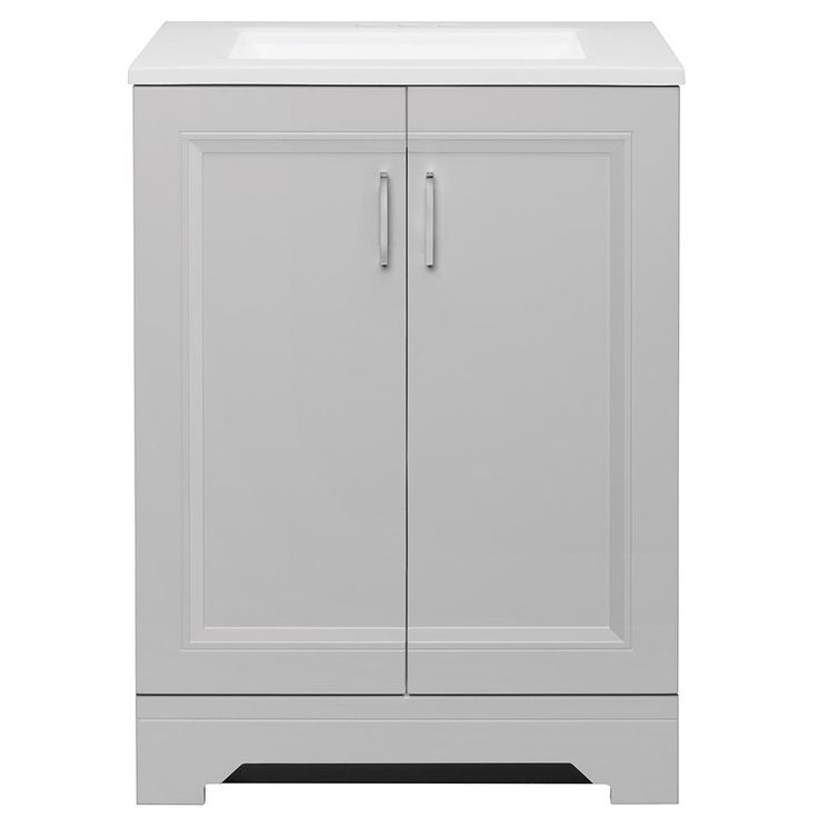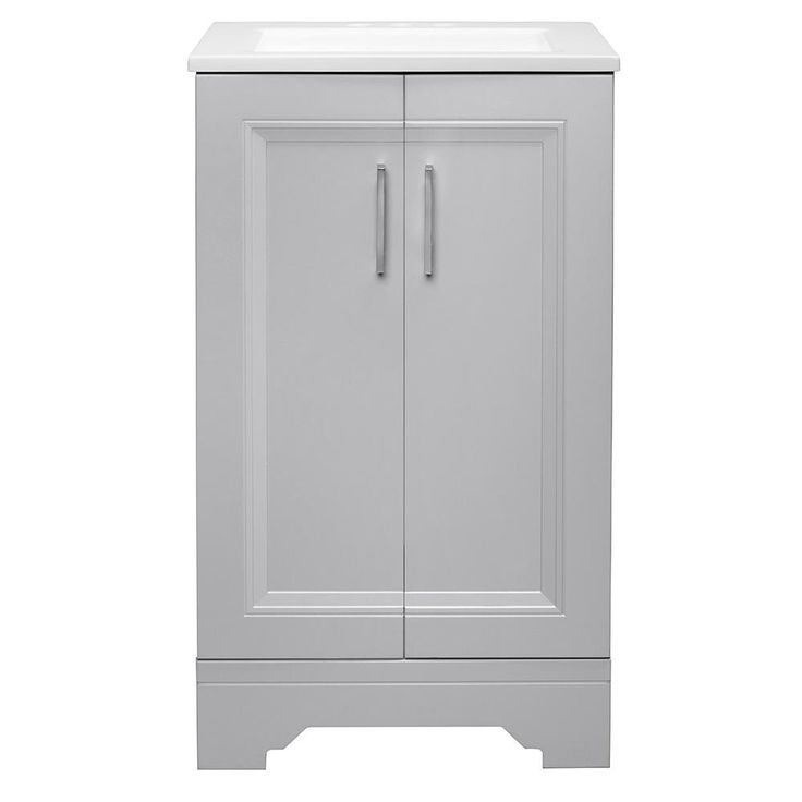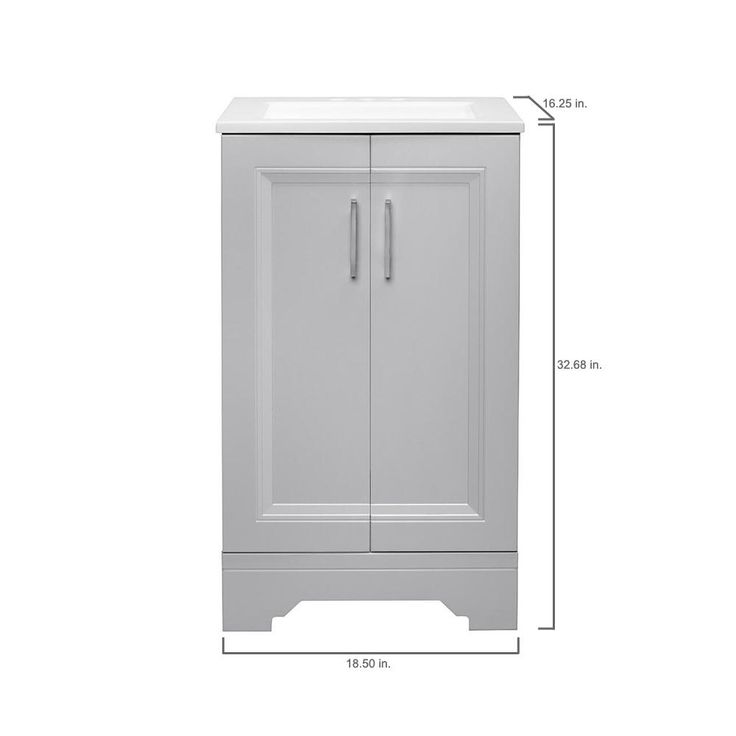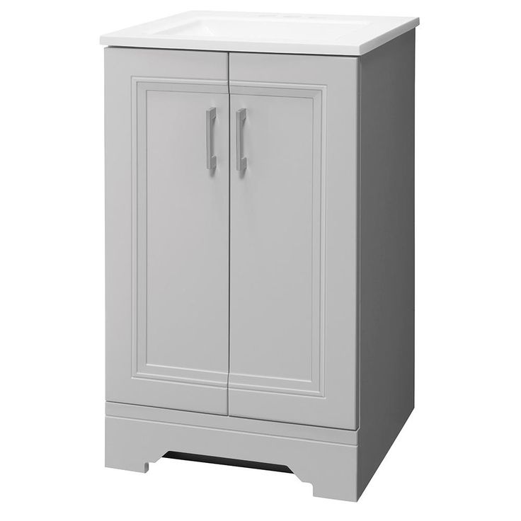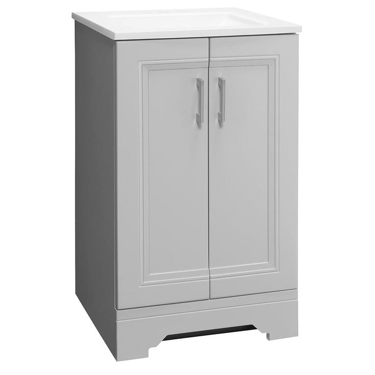 The Glacier Bay Willowridge 18.5 in. W Vanity in Dove Gray with Cultured Marble Vanity Top in White with White Basin has simple styling that will complement a wide variety of bath or powder room decor. The durable dove gray finished cabinet has plenty of storage space for your necessities. The stain and scratch resistant white cultured marble vanity top has an integral sink and is pre-drilled for a 4 in. spread faucet for simple installation. With decorative accents including the cabinet hardware this vanity is a simple solution to adding functionality and beauty to your decor. The cabinet is fully assembled for easy installation.