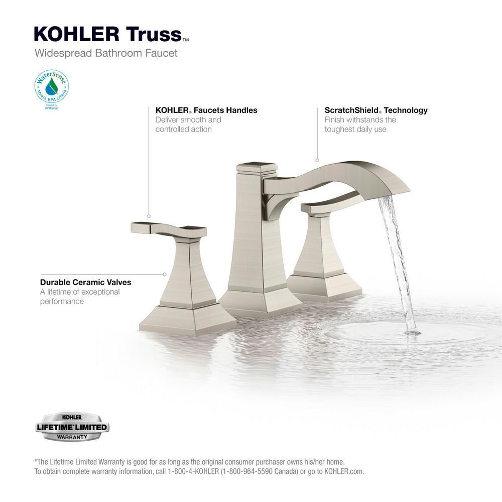 Inspired by Craftsman architecture, the Truss bathroom faucet has familiar, clean lines for a modern appearance. Truss faucets are designed to be easy to clean and their finishes resists corrosion and wear. The faucet's handles allow for smooth operation while the ceramic valves offer a leak-free and drip-free experience. It also features an aerator that ensures a splash-free water flow.
