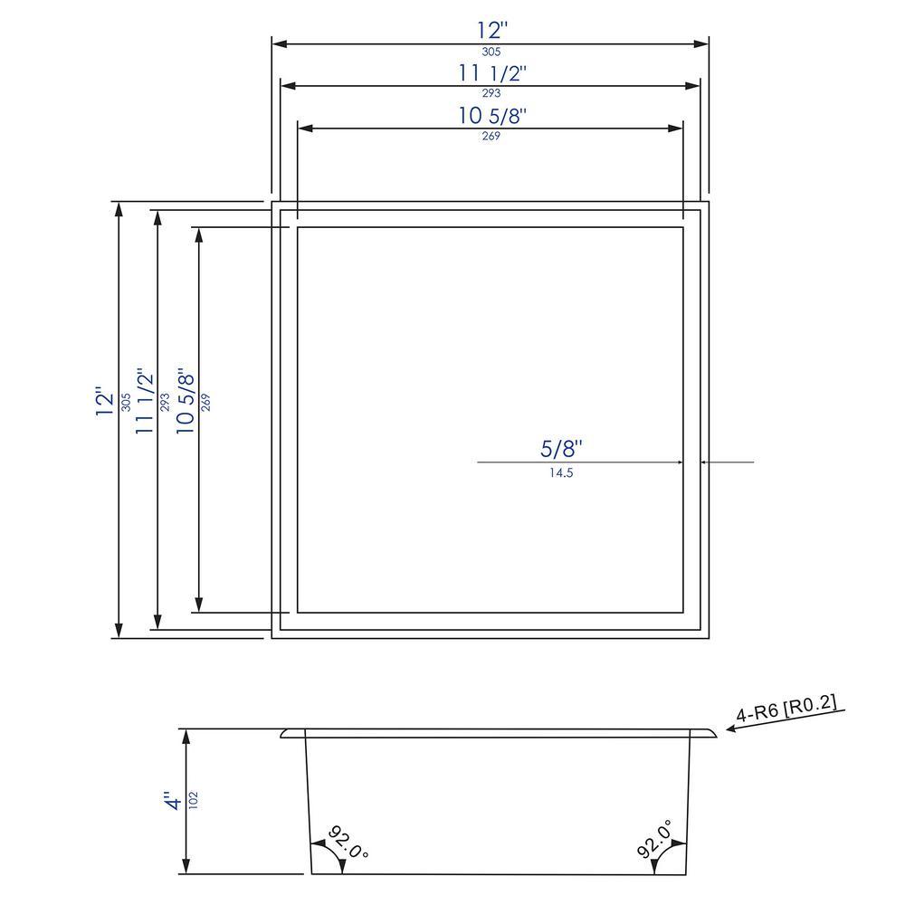 Interior Size: 10 5/8" x 10 5/8" x 3 7/8". The wall cut out dimensions are 10 3/4" x 10 3/4