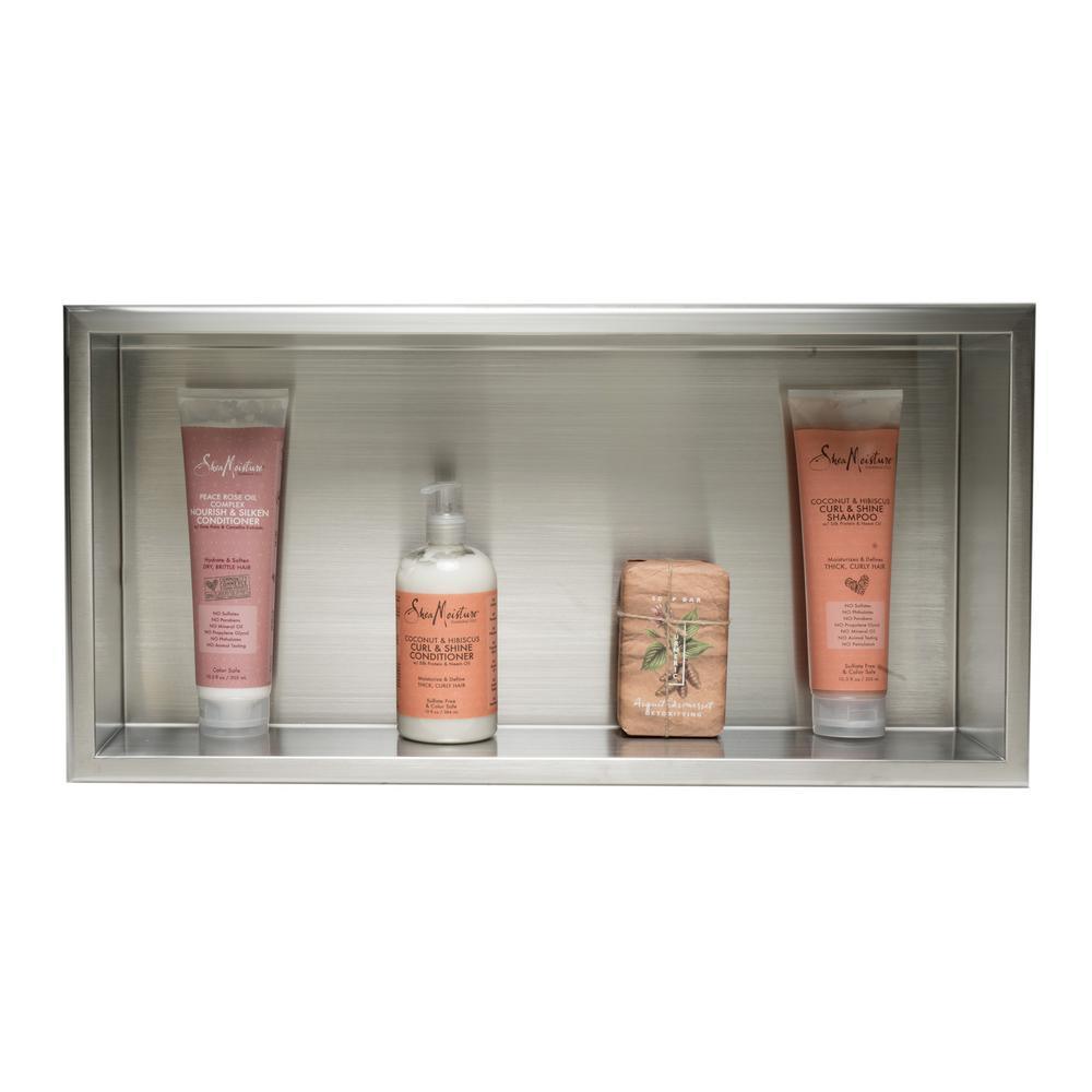 This ALFI BRAND large horizontal stainless-steel shower niche offers the practical convenience of recessed shelving by your bathtub, shower or bathroom wall, offering a space saving solution for soaps, shampoos, and other shower essentials. Sleek stainless-steel provides durability and longevity, enhancing your bathroom decor with modern appeal for years to come. It comes in 2-stylish finishes to accommodate your bathroom style, polished and brushed stainless steel.