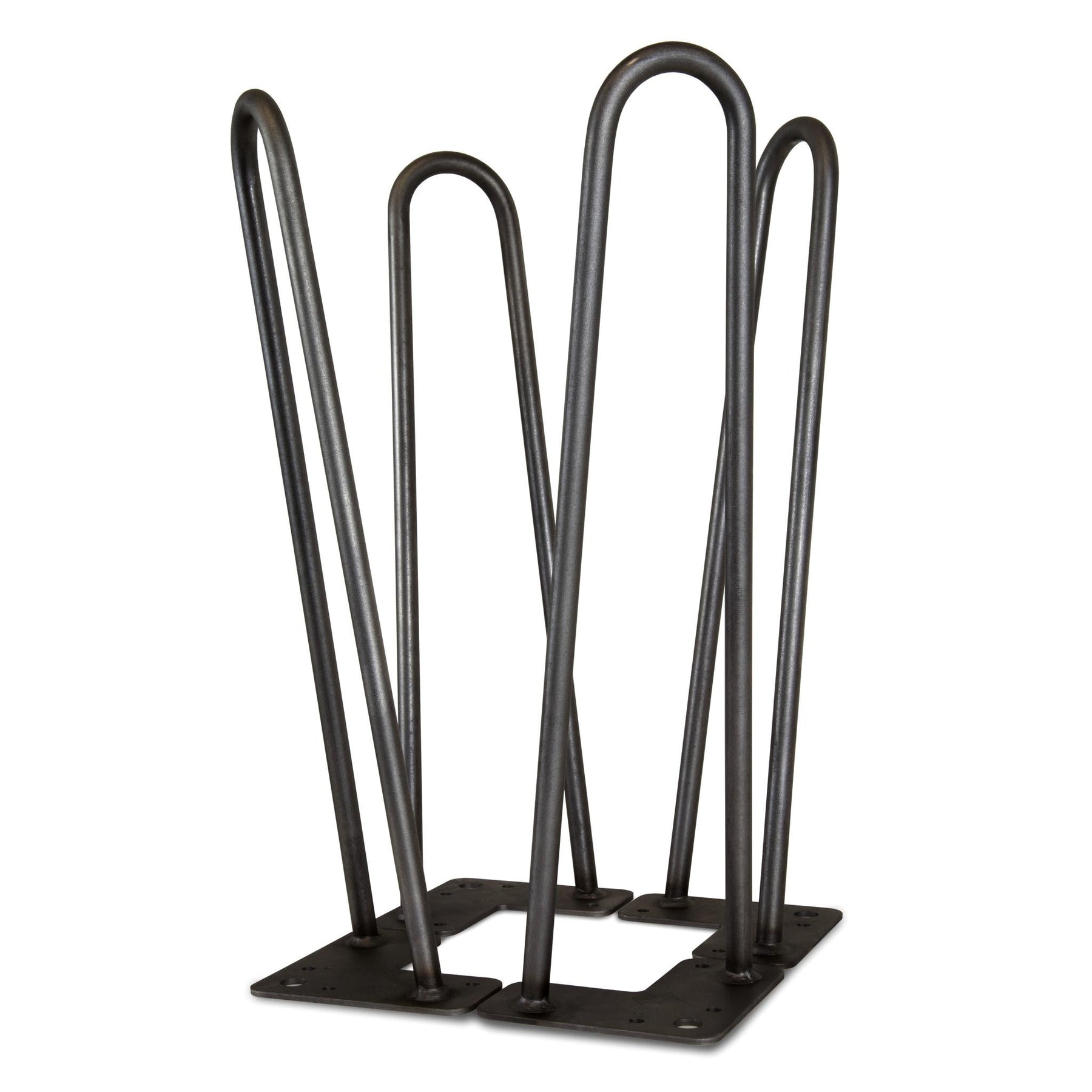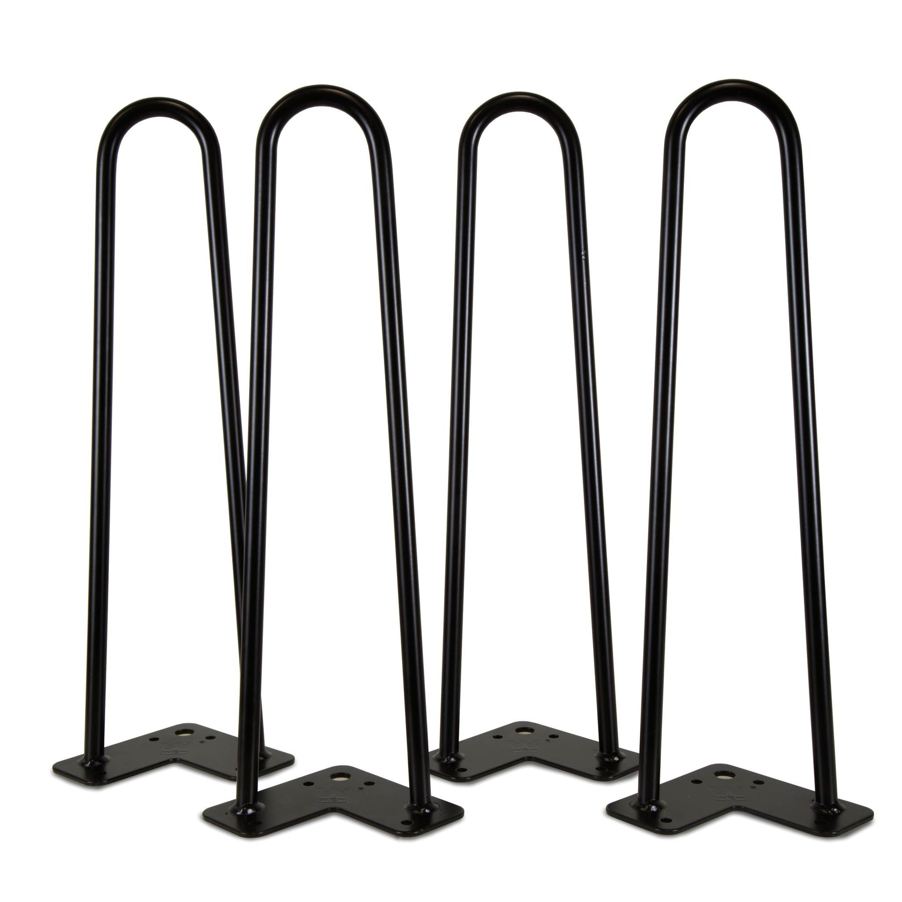 Create custom furniture with these mid-century modern hairpin legs. Made from 1/2-inch double-welded reinforced steel with a satin black finish, each leg includes a mounting plate with four pre-drilled holes for fast, sturdy installation.