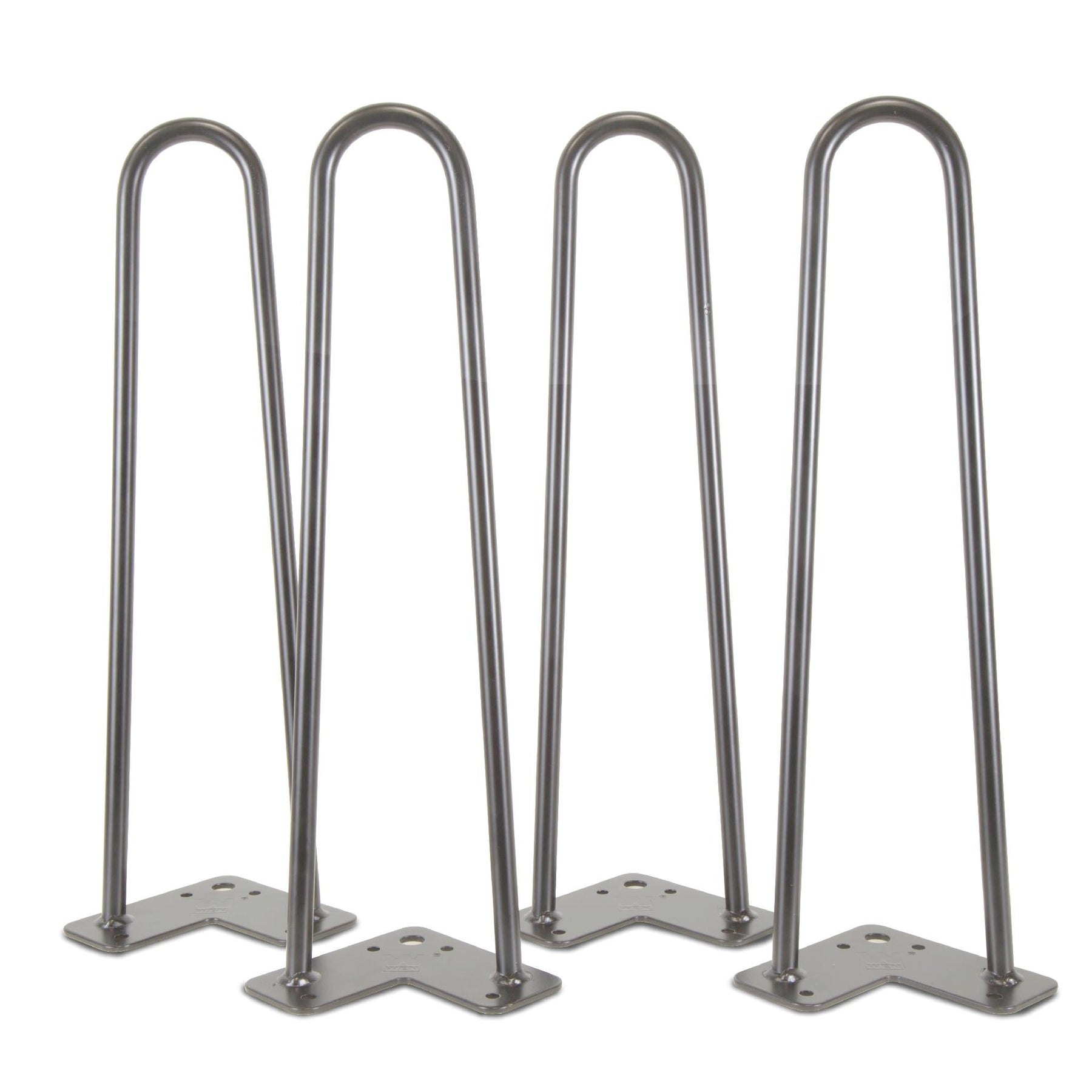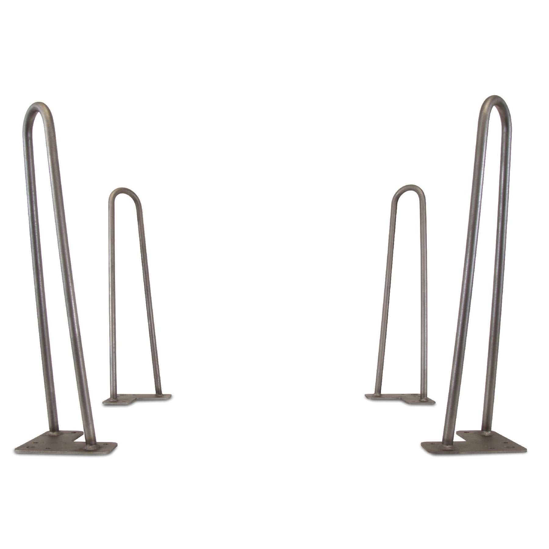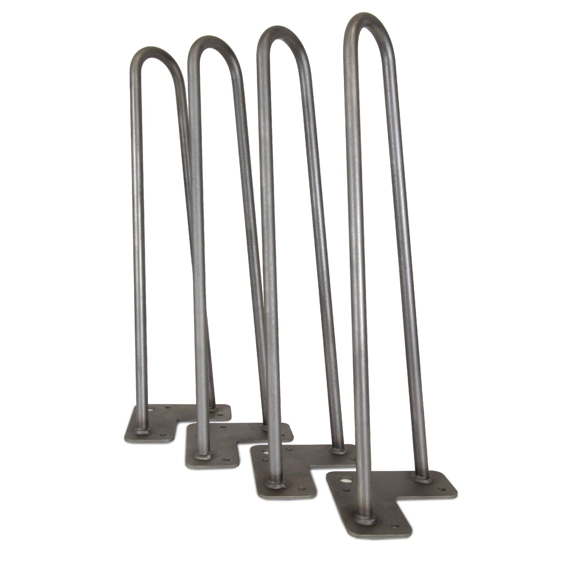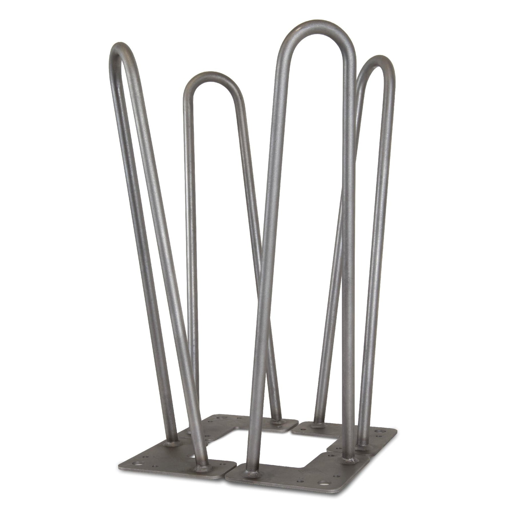 Build custom furniture with this set of four mid‑century modern hairpin legs made from heavy-duty raw steel. The two‑rod, 1/2 in. diameter design offers sturdy support and comes ready to paint with pre‑drilled mounting holes for fast installation.