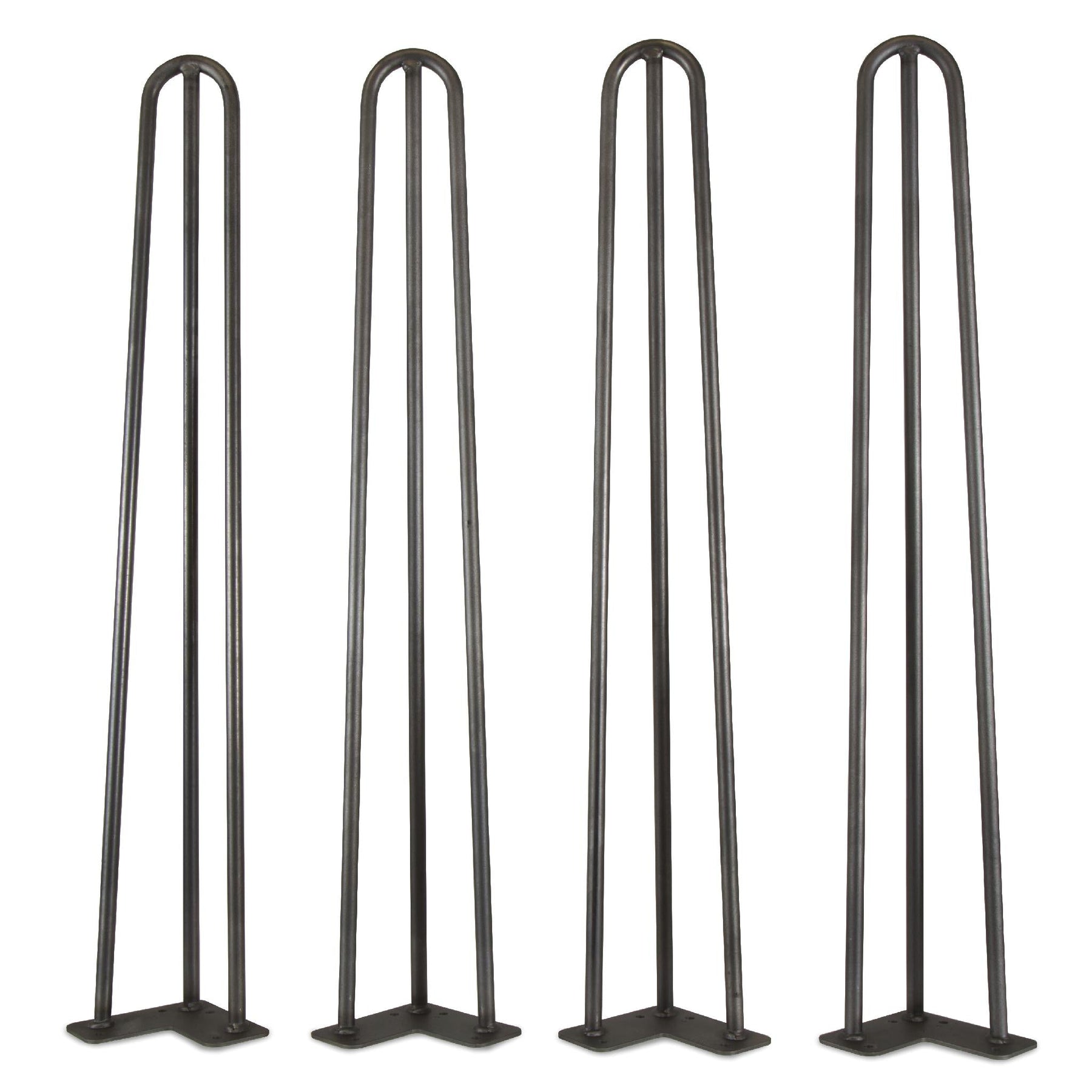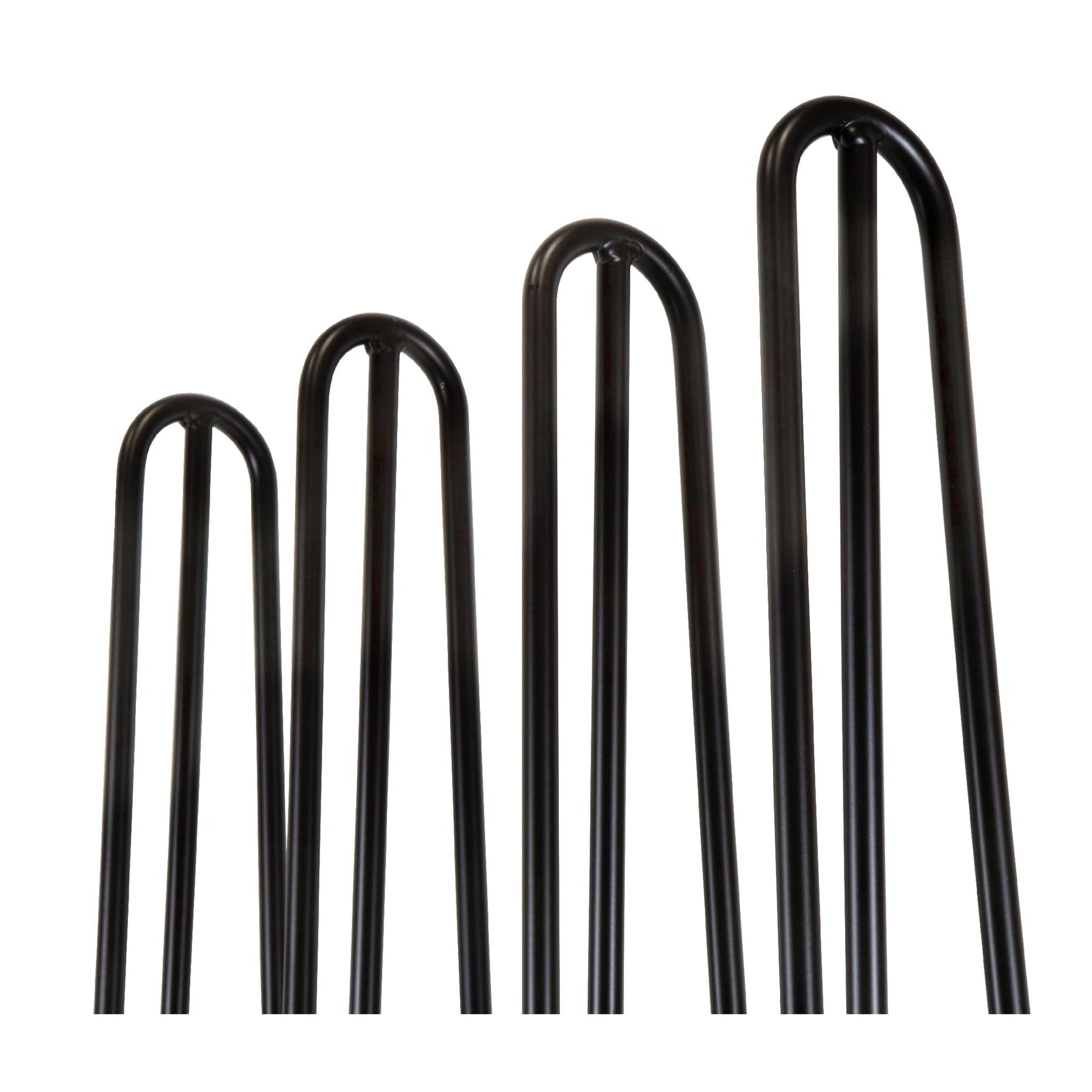 Build custom furniture with this 4-pack of mid-century modern hairpin legs from WEN. Crafted from double‑welded reinforced steel with a satin black finish, each 28-inch, 1/2-inch diameter leg offers sturdy support and quick installation with pre-drilled mounting holes.