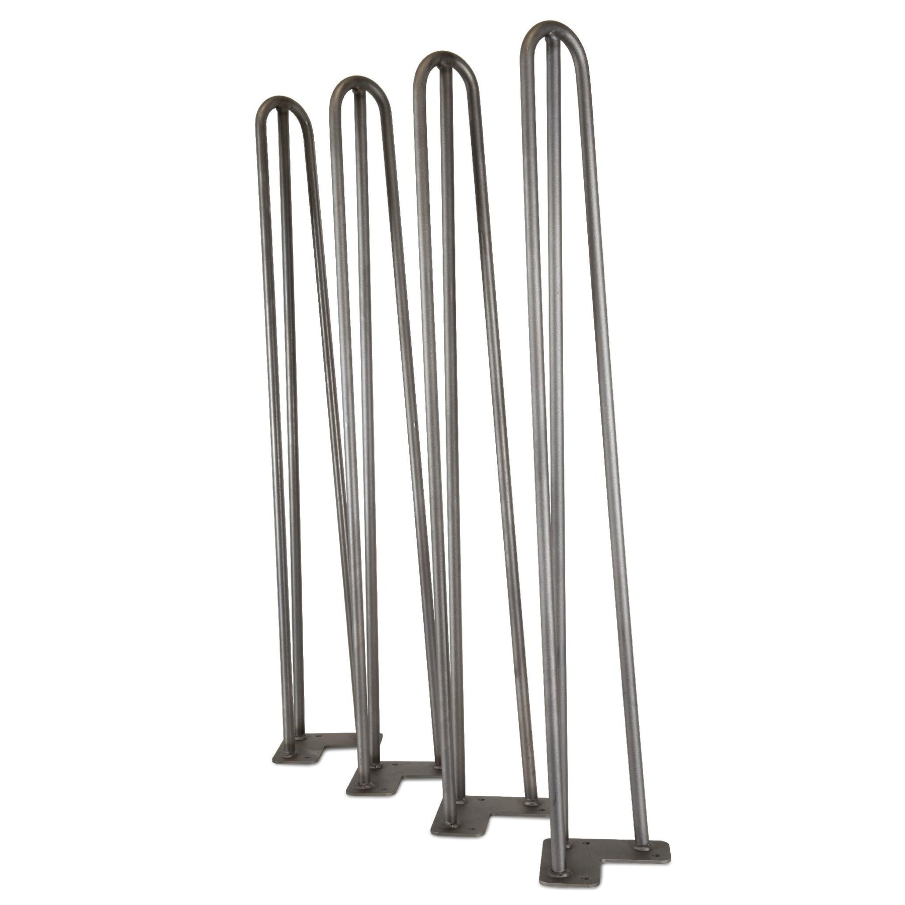 Build custom furniture with this 4-pack of mid-century modern hairpin legs. Made from double‑welded reinforced raw steel with a three‑rod design and four pre‑drilled mounting holes per leg for quick, sturdy installation.