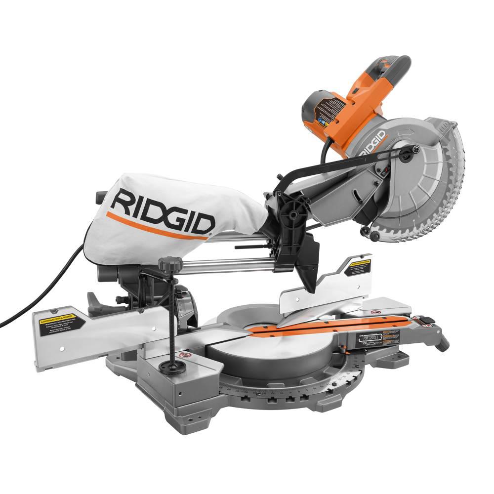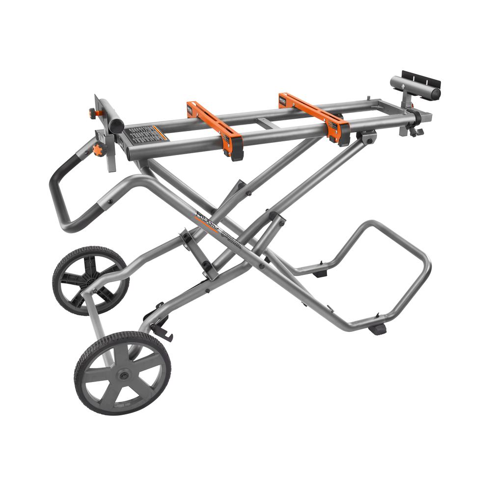 Includes: (1) 4210 RIDGID 15 Amp 10 in. Sliding Miter Saw, 10 in. carbide tipped blade, dust bag, material clamp, blade wrench, (1) AC9946 Universal Mobile Miter Saw Stand with mounting braces, wheels, handle, feet, frame support leg, and operator's manuals