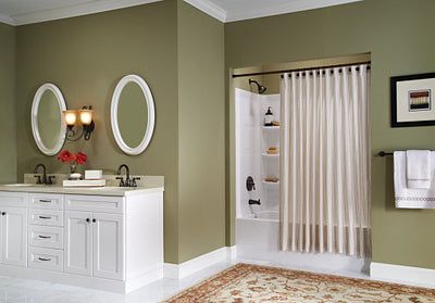 This MOEN Banbury 1-Handle Tub and Shower Faucet is transitionally designed and features a simple elegance that can easily accent your existing bathroom features. The single, lever-style handle is easy to use, while a pressure-balance valve helps prevent sudden bursts of hot or cold when water is running in other rooms. Self-cleaning nozzles and a durable Mediterranean bronze finish help you keep this fixture looking fresh and clean day after day.