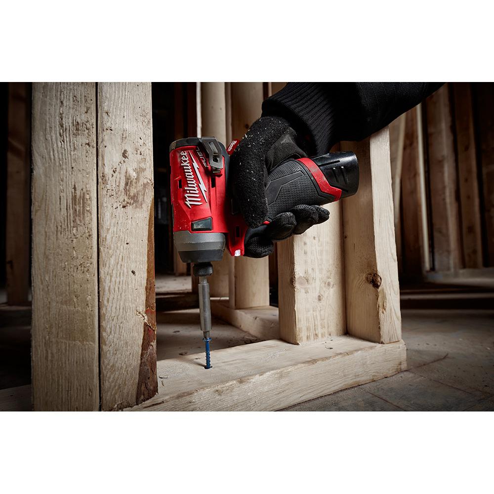 The M12 FUEL 1/4 in. Hex Impact Driver once again raises the bar for 12-Volt performance with best in class driving speed, power, and size. By focusing on productivity, this Impact Driver gets the job done faster by being over 20% faster in application speed versus the competition. This tool outputs over 1,300 in./lbs. of torque that allows the user to get more work done by completing a wide range of fastening. Measuring only 5.1 in. L allows for unmatched access in tight spaces. The POWERSTATE Brushless Motor delivers up to 0-3,300 RPM with constant power output to drive screws faster. REDLINK PLUS Intelligence is the most advanced electronic system on the market, preventing damage to the tool and battery caused by overloading or overheating. For use with M12 REDLITHIUM Compact Batteries or Extended Capacity Batteries which deliver more work per charge and more work over the life of the pack than competitive batteries on the market. The 4-Mode DRIVE CONTROL provides greater control over output speed and power for greater versatility by delivering 0-1,300 RPM in Mode 1, 0-2,400 RPM in Mode 2 and 0-3,300 RPM in Mode 3. Mode 4 is Self-Tapping Screw Mode which is designed to reduce walking when starting self-tapping screws as well as reduce overdriving, breaking and stripping out screws. Includes A Free M12 HACKZALL Cordless Reciprocating Saw (2420-20).