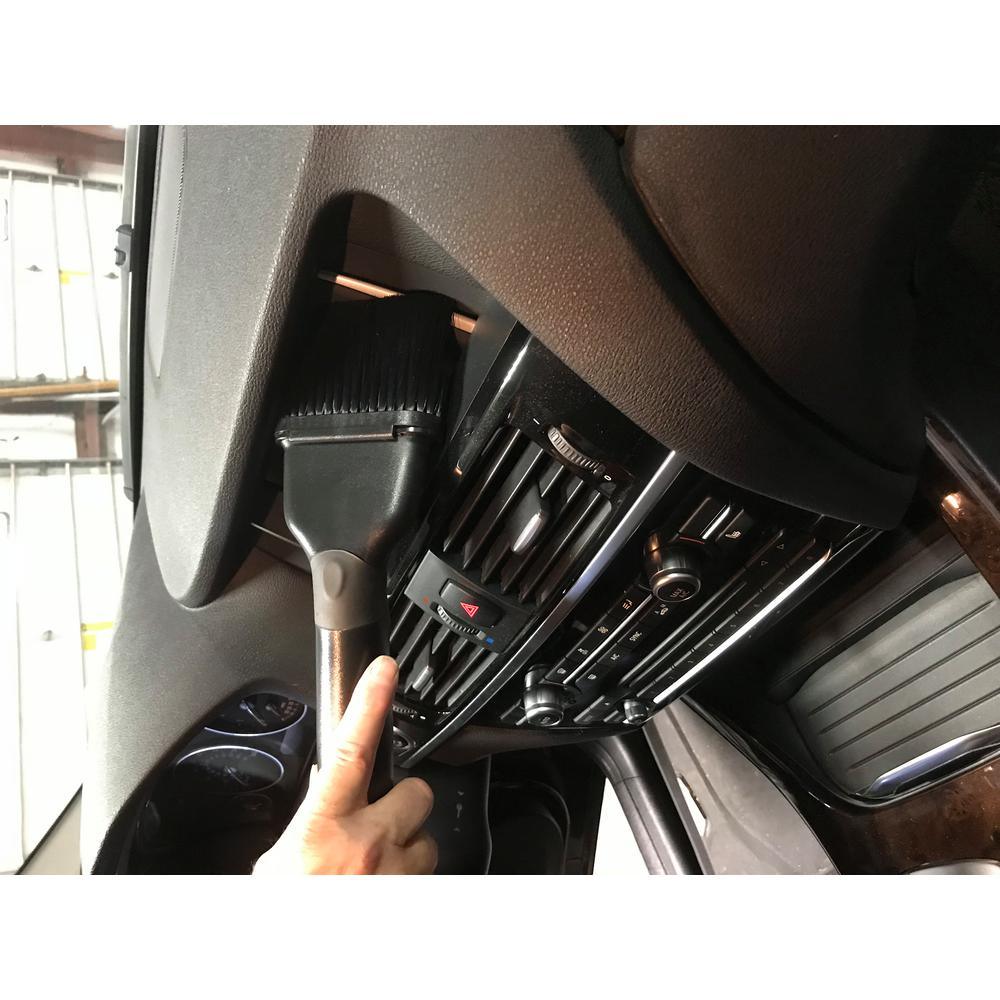 The 93554 is designed for use with all major brands of home shop vacuums. The long highly flexible hose allows for cleaning vehicles without having to pull the vacuum in tight protecting the vehicle from damage. The hose is a commercial grade hose that offers far superior airflow and clog resistance as compared to the typical home shop vacuum hose made with a process that results in stiffer corrugated interior. The accessories are designed to work like those used by professional car detailers taking advantage of the higher airflow typical in home or shop vacuums. The wide paddle crevice is ideal for sliding down between a car seat and the center Consul typical in today's vehicles. The large opening prevents clogs and allows for the tool to pick up larger debris. The upholstery is designed to mirror popular commercial claw tools found in full service carwashes. The dusting tool is unique in the market with paintbrush soft bristles ideal for cleaning uneven surfaces. All of these tools are interchangeable to a soft grip handle, ergonomically designed to insure comfortable use. A second 24 in. crevice allows you to reach deep into tight spots like a dryer vent or under a low-profile Appliance. The 93554 is compatible with major home shop vacuums brands including Shop-Vac, Ridgid, Works, Craftsman, Vacmaster, Koblenz and most other brands.