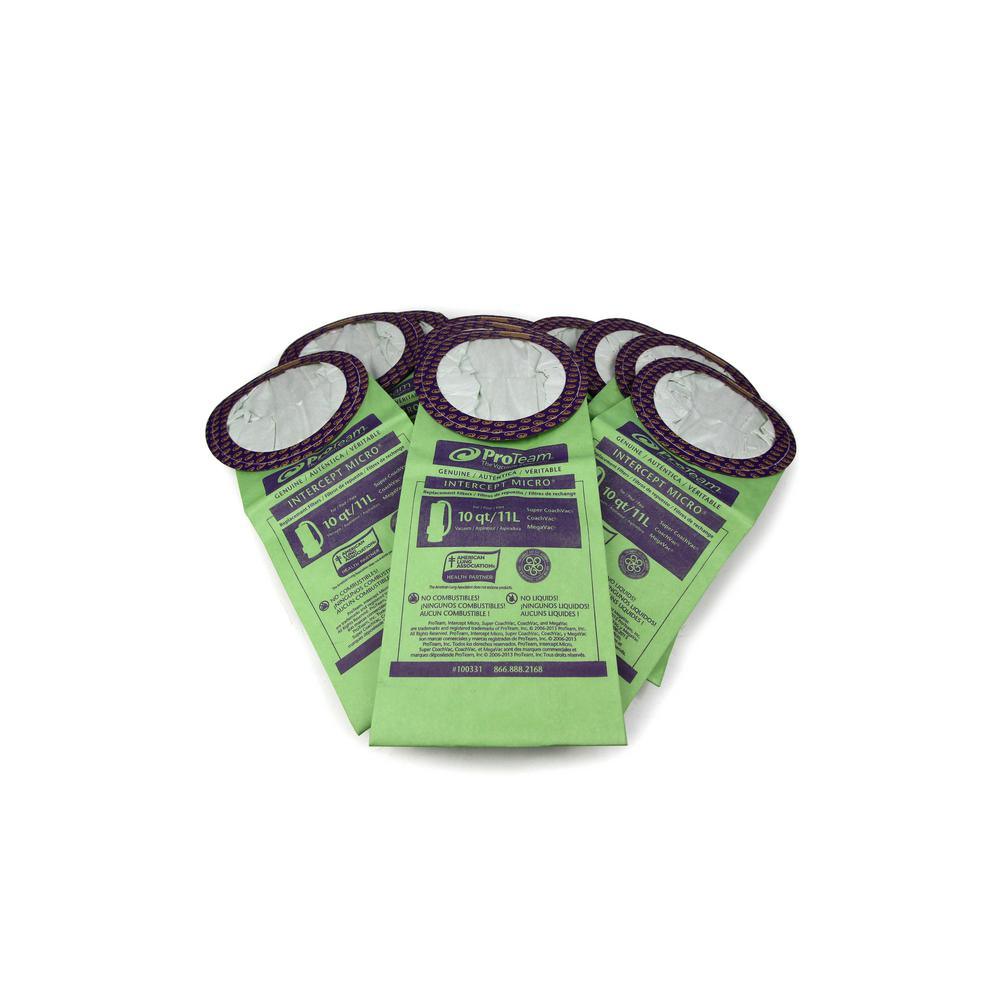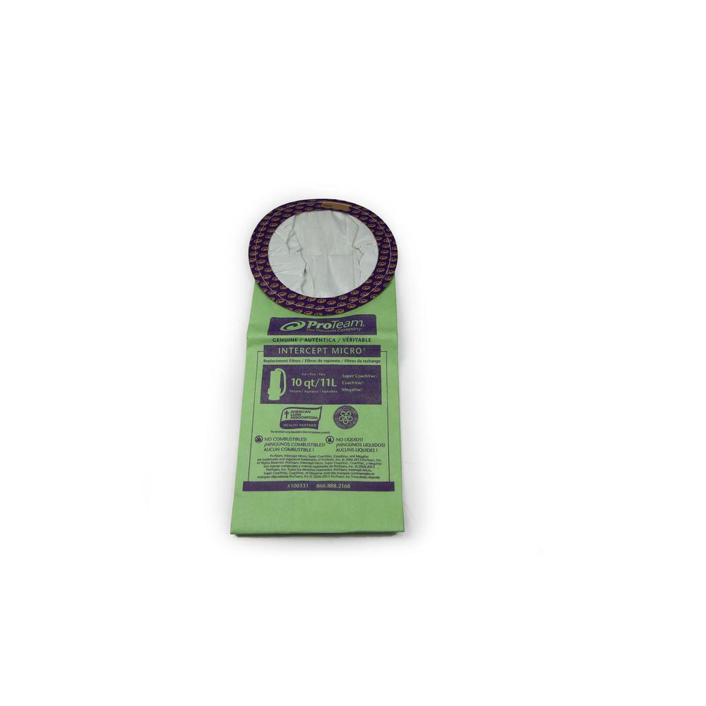 - 10-pack of genuine 10 Qt. round ProTeam bags, fits super coachVac, coachVac and megaVac ProTeam models