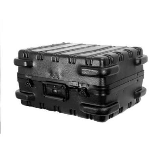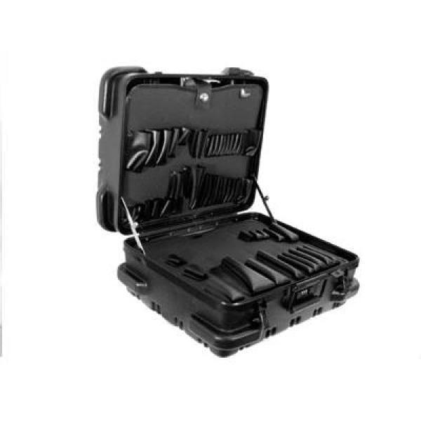 This Chicago Case rugged tool case can protect all of your electronic tools, even in the harshest environments. Utilizing a 25% thicker high density polyethylene construction than standard cases, this military ready case can withstand harsh elements from minus 40°F to plus 185°F. 2 machine-stitched pallets hold over 50 tools and allow for easy tool accessibility and organization. The bottom of the case offers additional storage for meters, batters, test equipment and other electronics. The case also includes military style latches that accepts an optional 3 digit, TSA authorized combination lock. The spring-loaded steel handle and a soft cushion grip allows for additional comfort. The cart case includes a retractable handle and wheels to easily transport your tools. Tools NOT included.