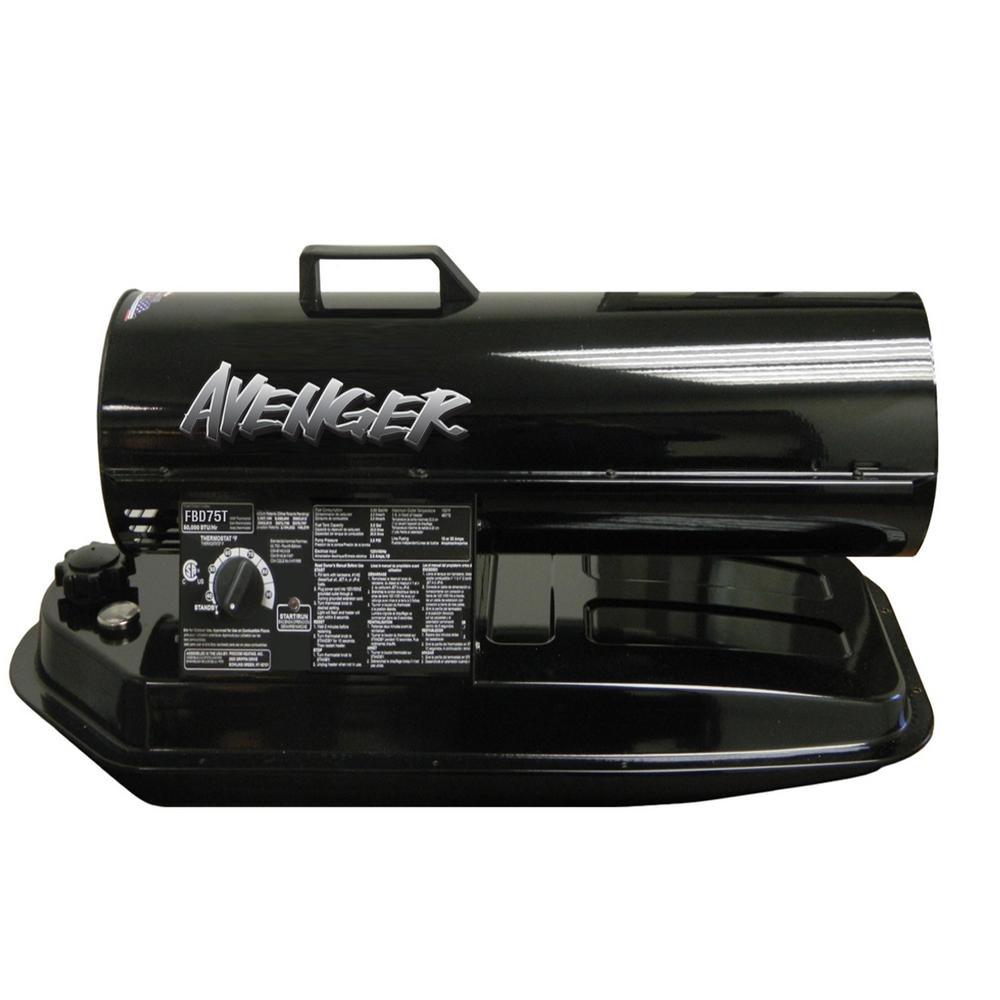 This Avenger Portable Kerosene/Diesel Forced Air Commercial Heater combines commercial quality construction with high-end features to deliver superior performance in temperatures down to -40°F. Perfect for heating up garages, construction sites, barns, factories or warehouse for your own comfort and well-being. This heavy-duty kerosene heater heats up an entire space of 1,800 sq. ft. at 75,000 BTU.