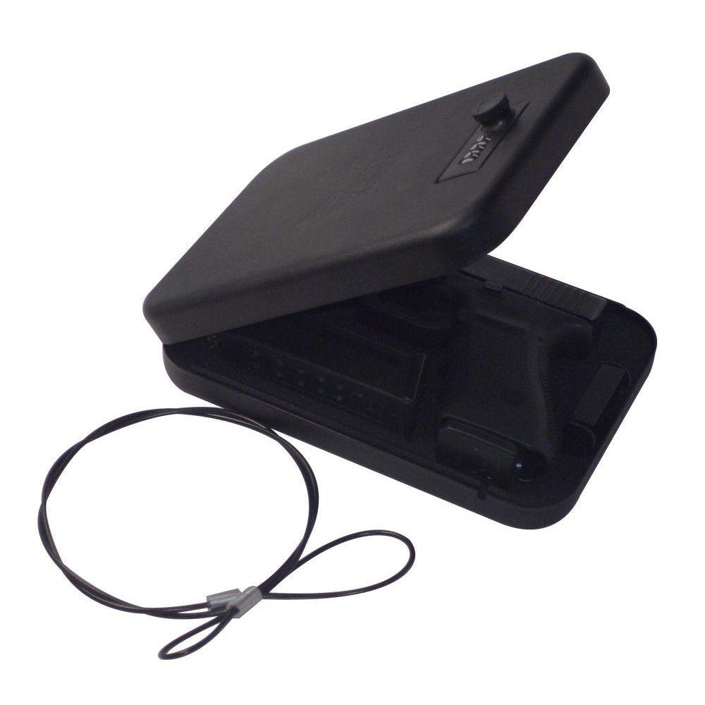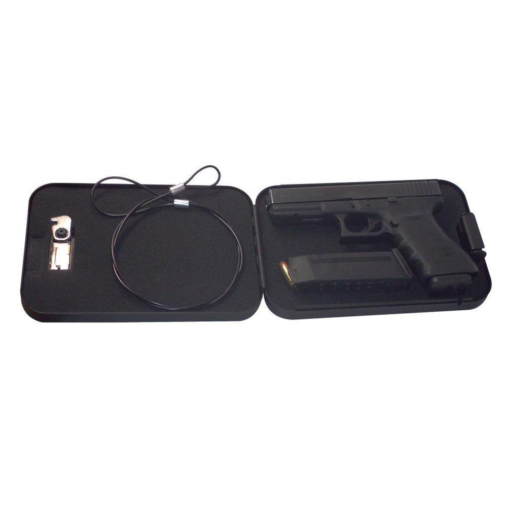 Monster Safes is pleased to introduce the MS300 a secure and affordable handgun storage safe solution. The MS300 is perfect for home travel or concealed-weapon permit holders. The MS300 meets TSA airline firearm guidelines and fits discreetly in a bag, briefcase, desk, or under a vehicle seat. The MS300 features an easy-to-operate combination lock system, 18-Gauge steel construction, and 1/2 in. per side thick memory foam interior. When the cable is wrapped around any fixed object and slid over the lock receiver inside the security box both the MS300 and any valuables will be securely attached.
