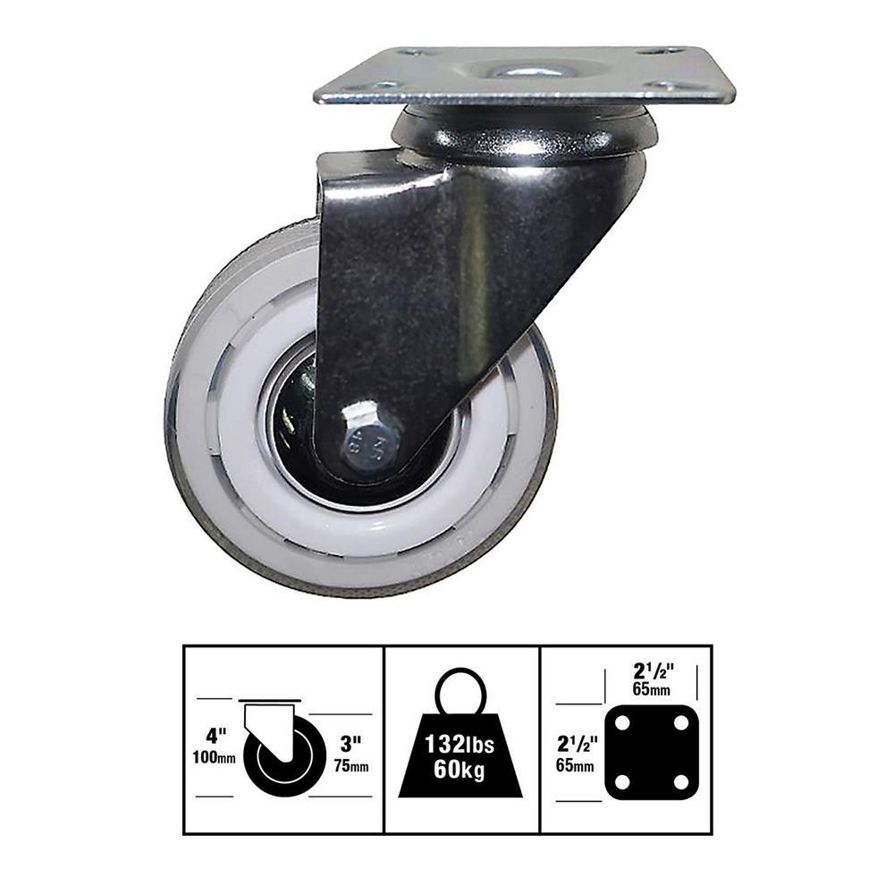 3 in. White Snow Swivel Caster with 132 lbs. Load Capacity is part of the designer caster collection. Add more than a splash of color with non-marking 2 in. polypropylene 4-packs or commercial grade 3 in. polyurethane swivel casters with chrome finish and mount. Designer casters add superior mobility and un-matched style to all kinds of furniture and appliances.