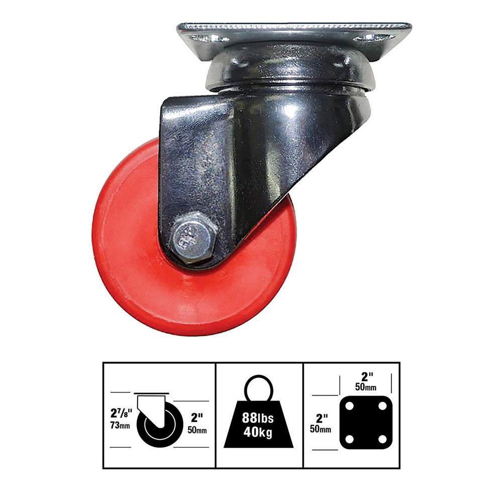 2 in. Cherry Red Swivel Caster with 88 lbs. Load Capacity, 4-Pack is part of the designer caster collection. Add more than a splash of color with non-marking 2 in. polypropylene 4-packs or commercial grade 3 in. polyurethane swivel casters with chrome finish and mount. Designer casters add superior mobility and un-matched style to all kinds of furniture and appliances.