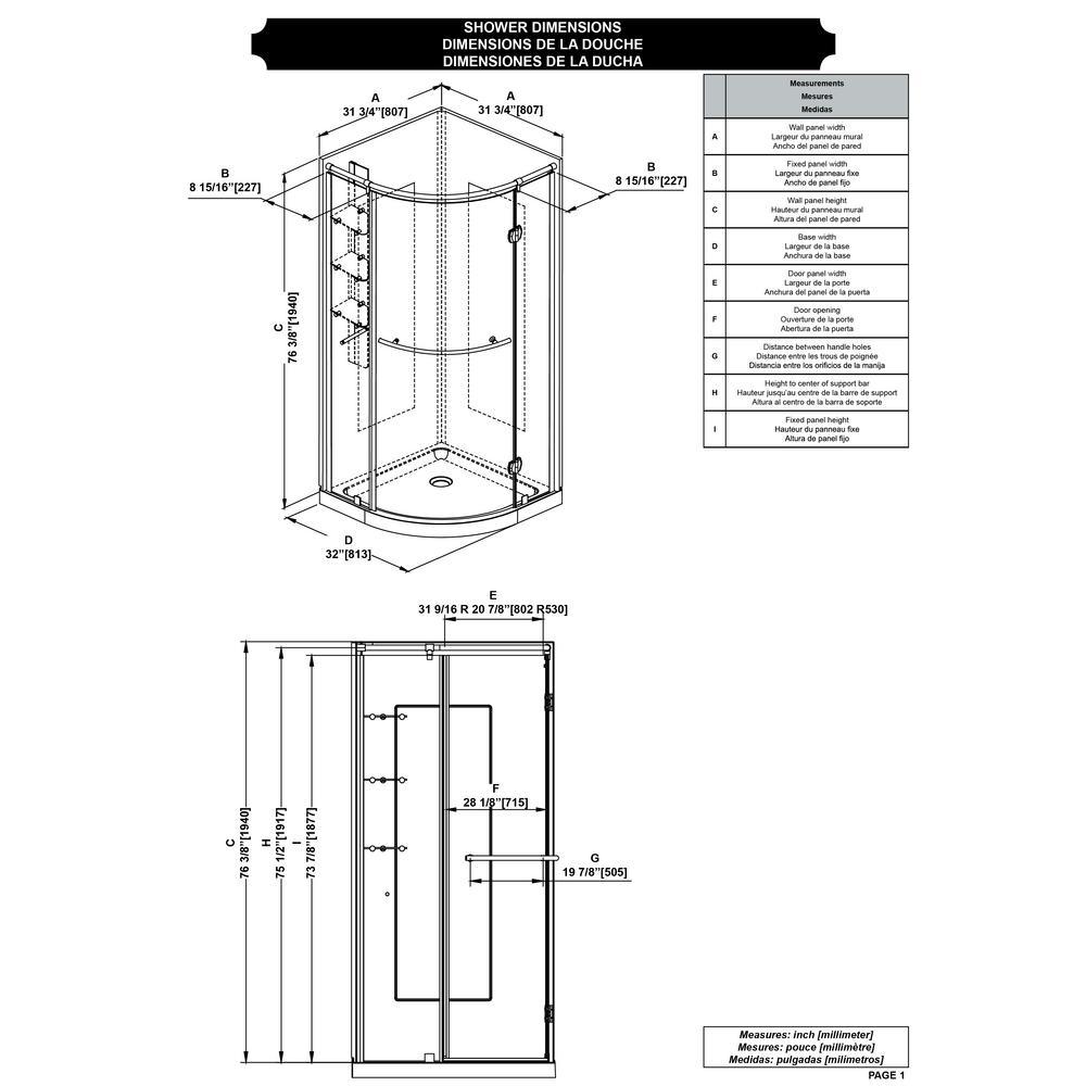 Designed to fit a 32 in. corner wall space