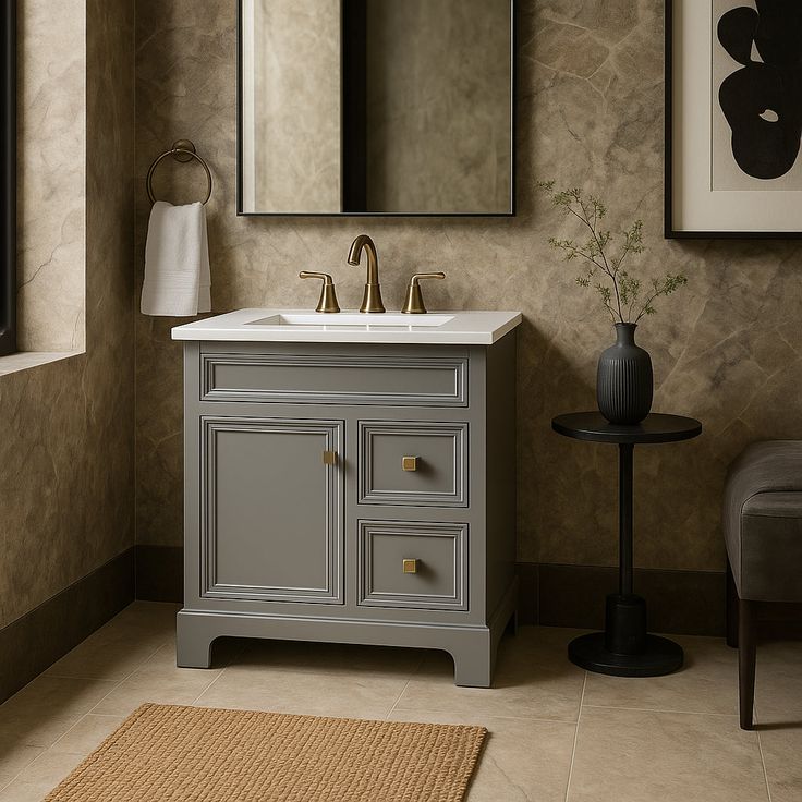 Transform your bathroom into a sanctuary of sophistication with the Sedgewood Vanity. Its dove gray finish and Arctic solid surface top exude understated elegance, while the customizable drawer and door configuration offers both style and functionality. Pair it with brushed nickel fixtures and soft lighting to create a serene and luxurious space. This vanity is the perfect blend of practicality and timeless design, making it an essential addition to any refined home.